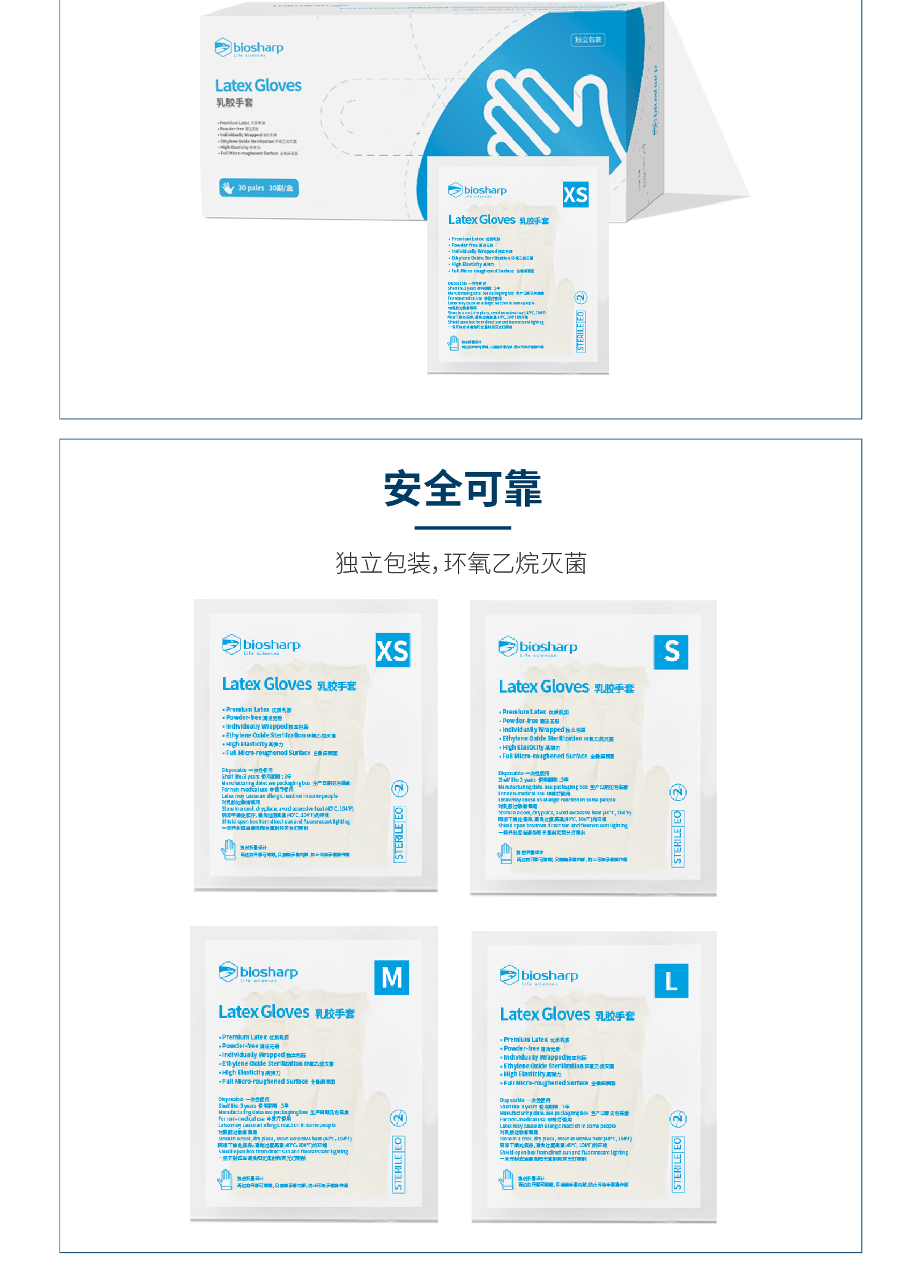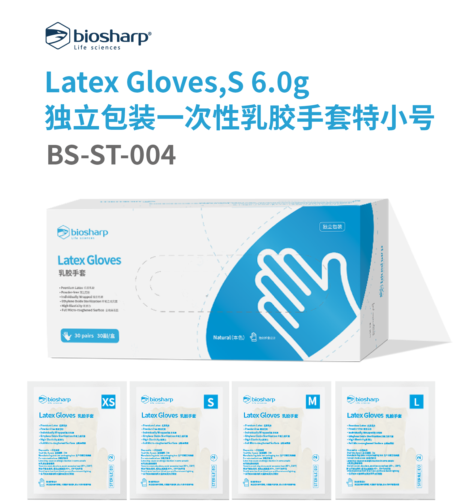BS-ST-004 独立包装一次性乳胶手套特小号6.0g