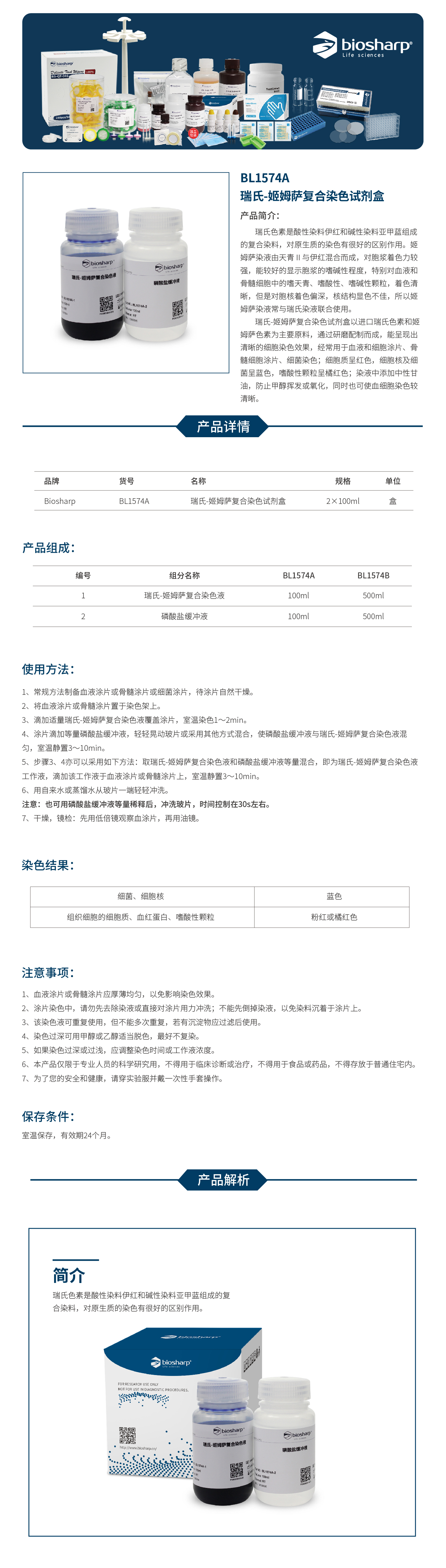 BL1574A 瑞氏-姬姆萨复合染色试剂盒