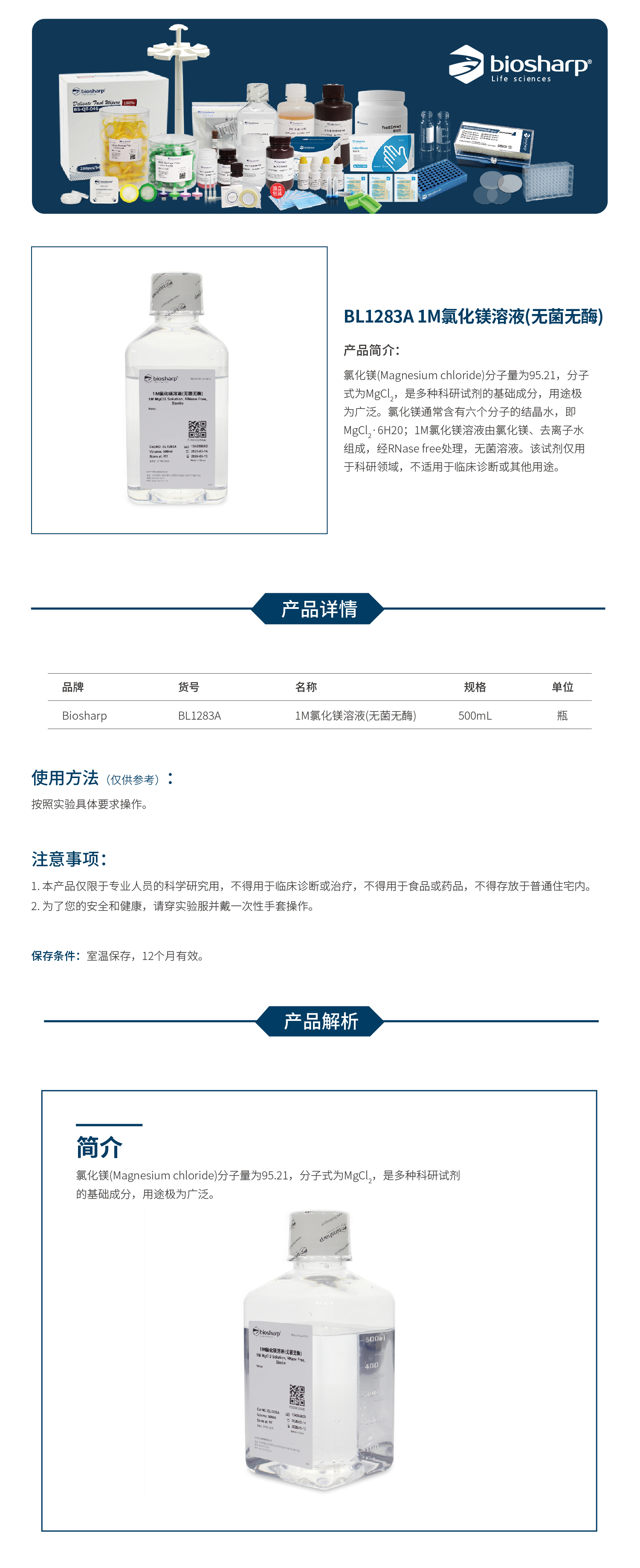 BL1283A 1M氯化镁溶液(无菌无酶)
