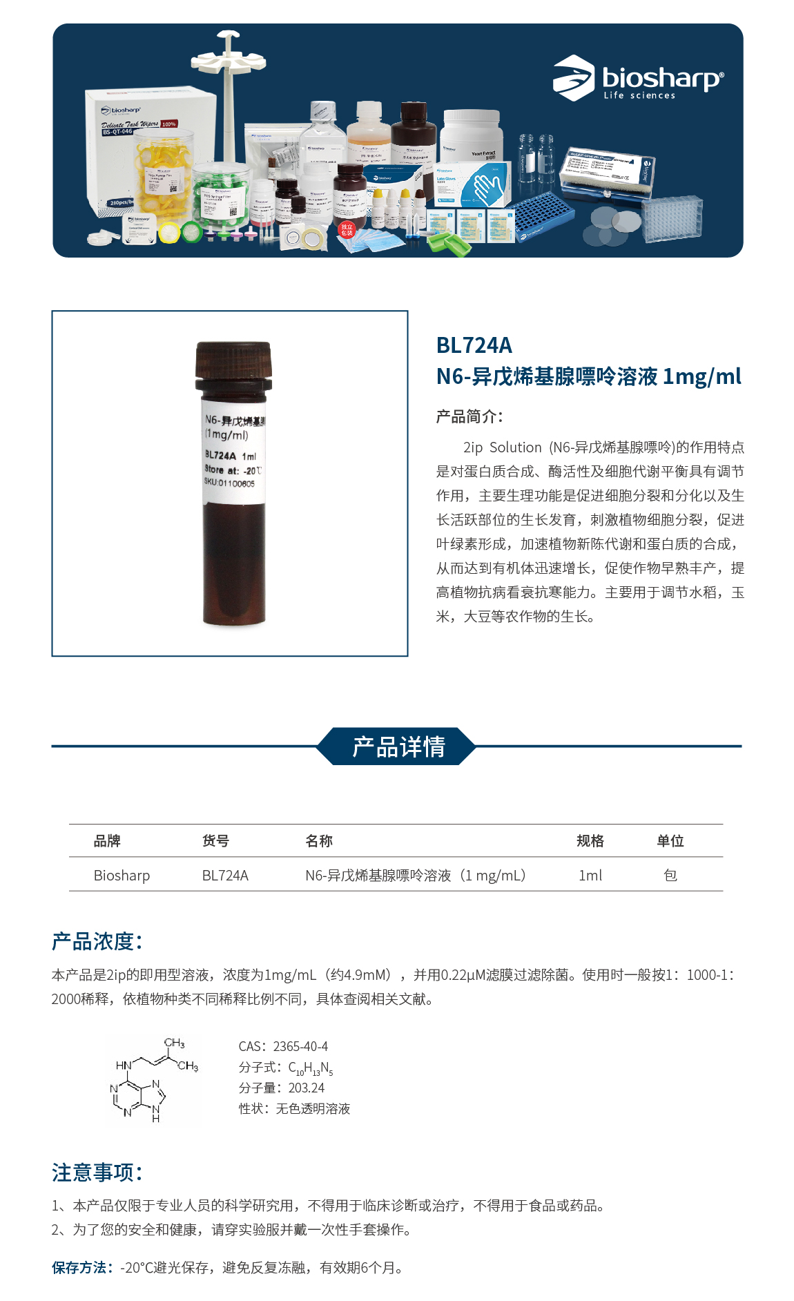 BL724A N6-异戊烯基腺嘌呤核苷溶液(2ip riboside)1mg/ml