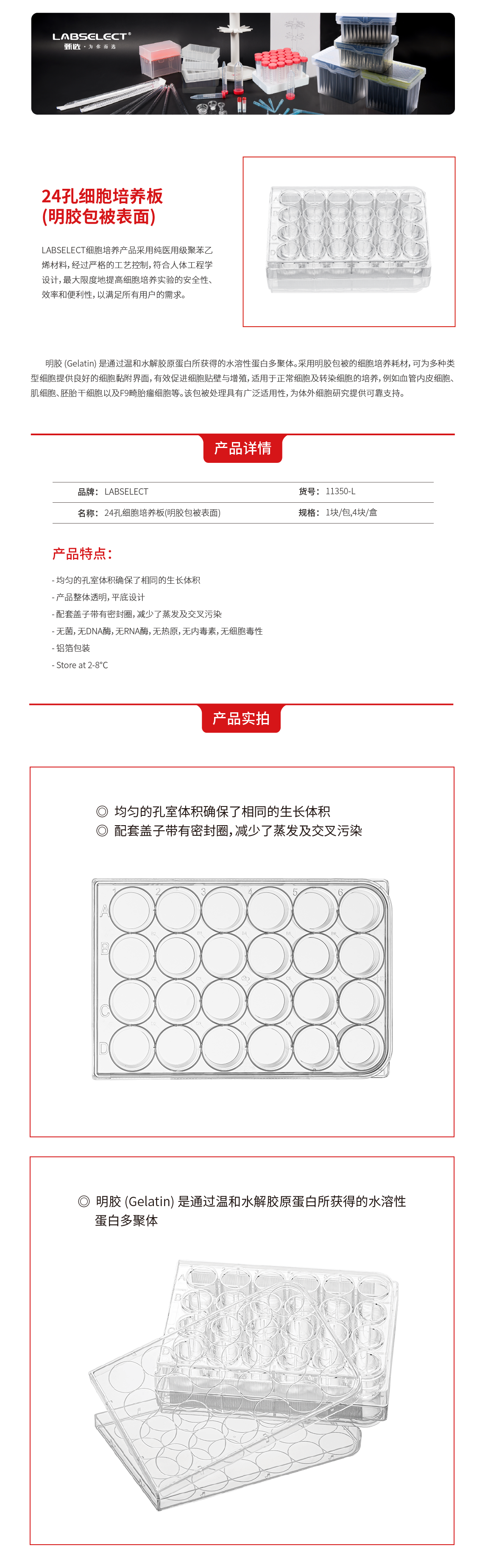 11350-L 24孔细胞培养板(明胶包被表面)