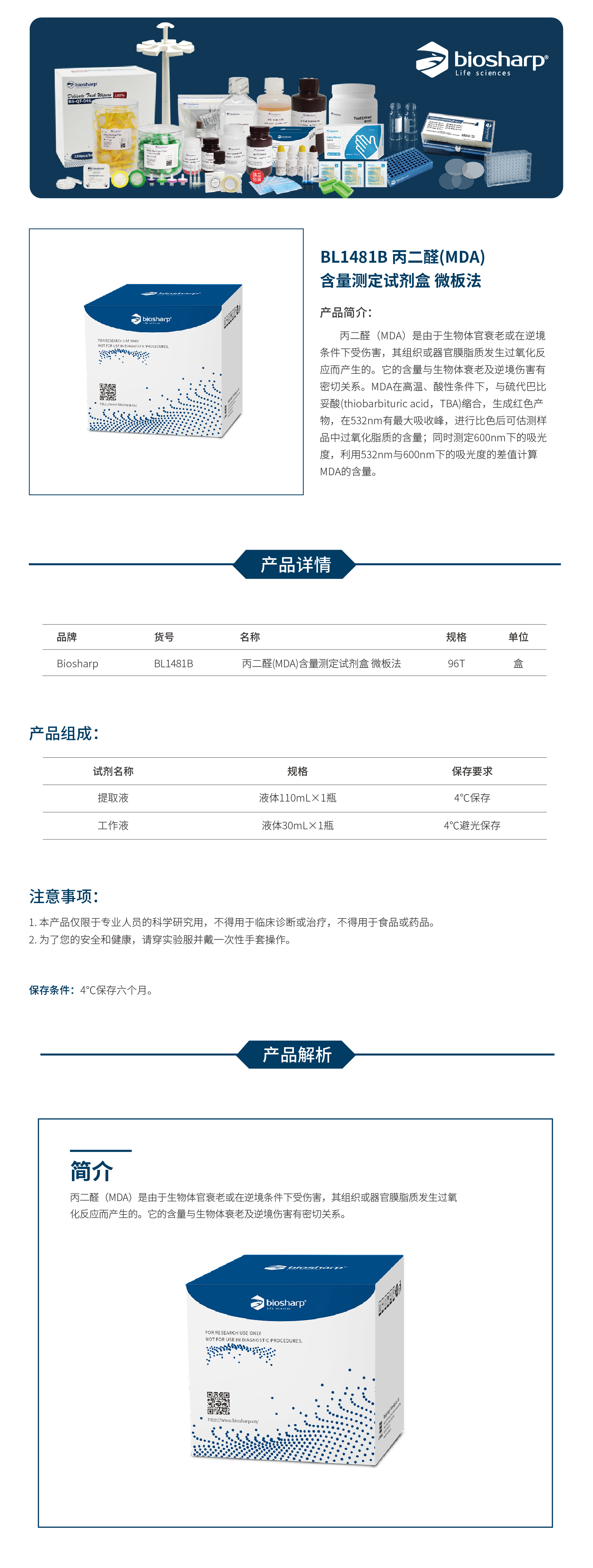 BL1481B 丙二醛(MDA)含量测定试剂盒 微板法