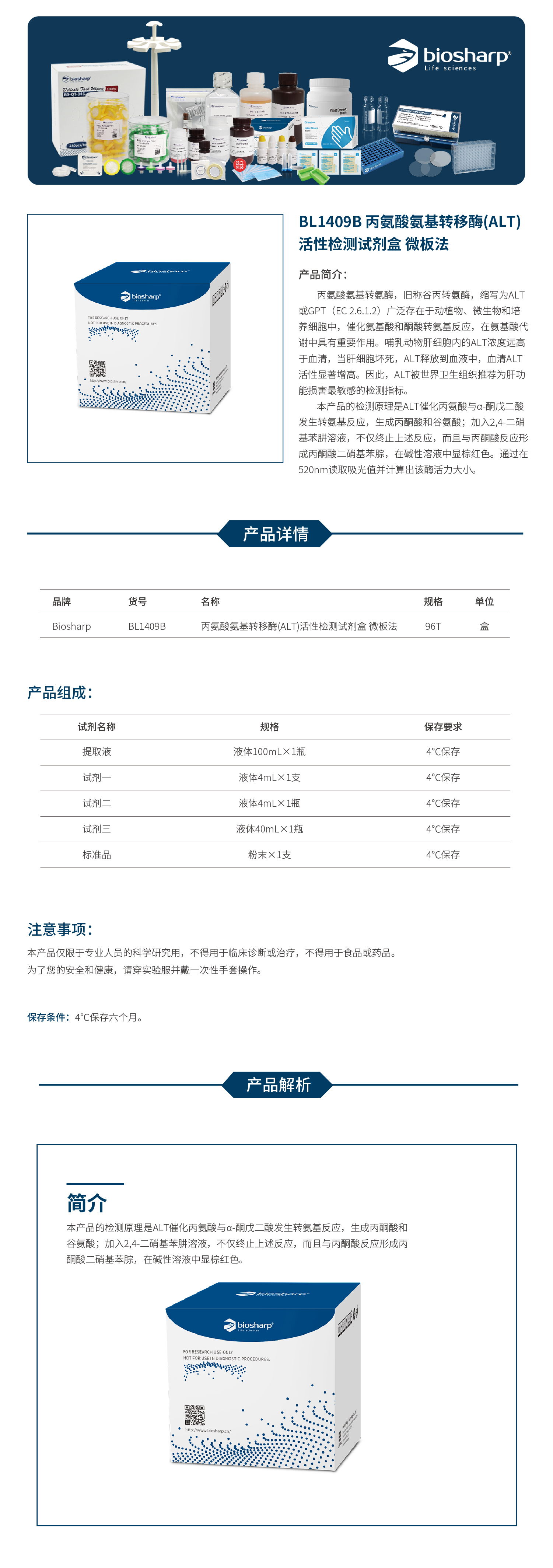 BL1409B 丙氨酸氨基转移酶(ALT)活性检测试剂盒 微板法