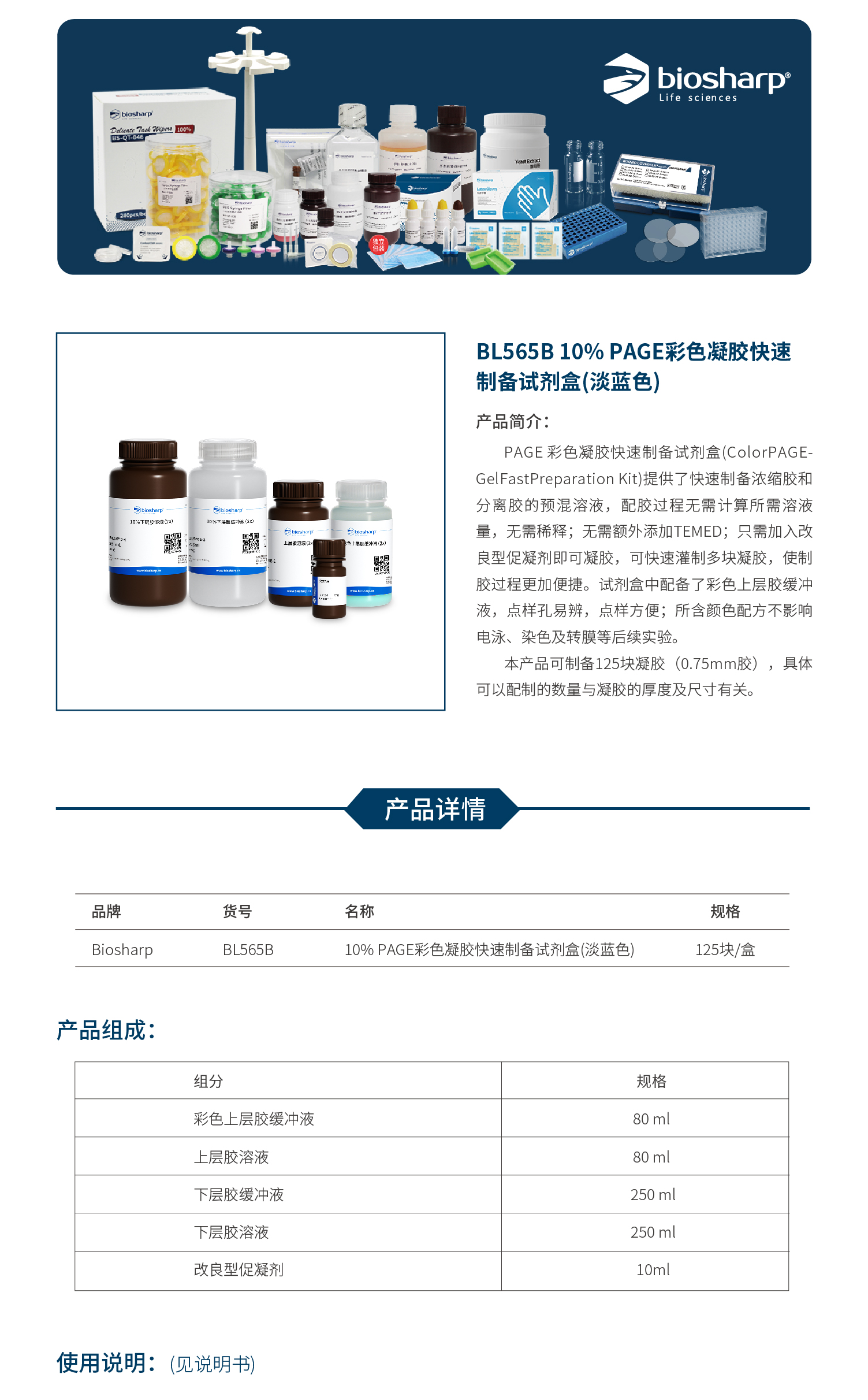 BL565B 10% PAGE彩色凝胶快速制备试剂盒(淡蓝色)