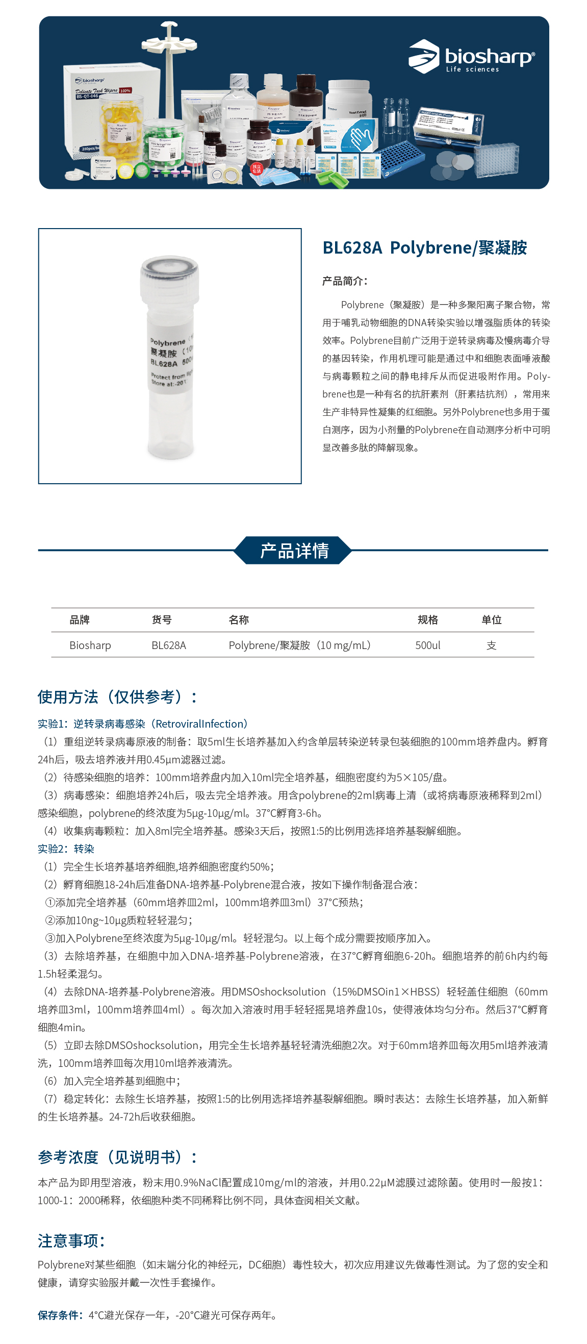 BL628A Polybrene/聚凝胺(10 mg/mL)