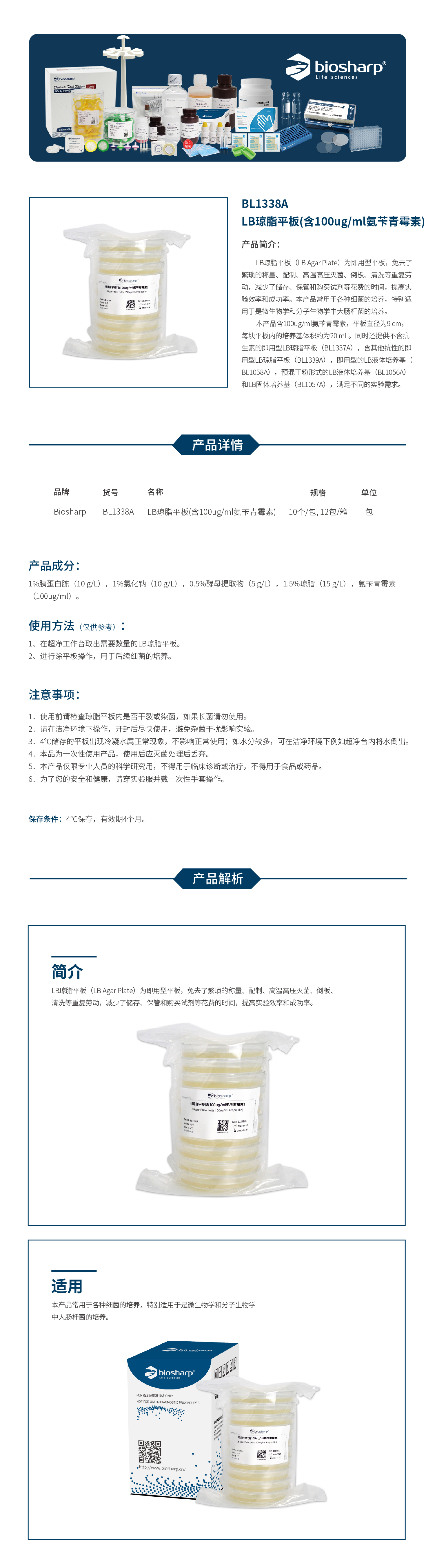 BL1338A LB琼脂平板(含100ug/ml氨苄青霉素)