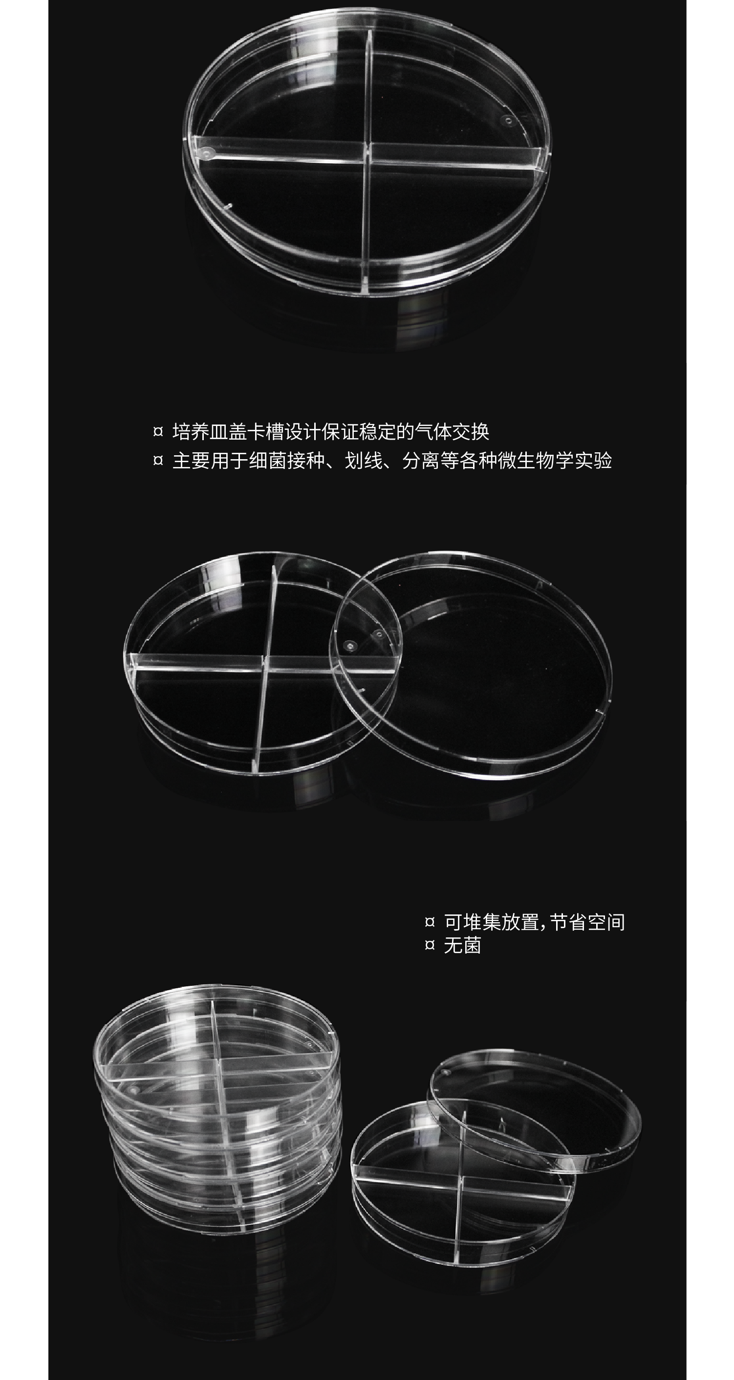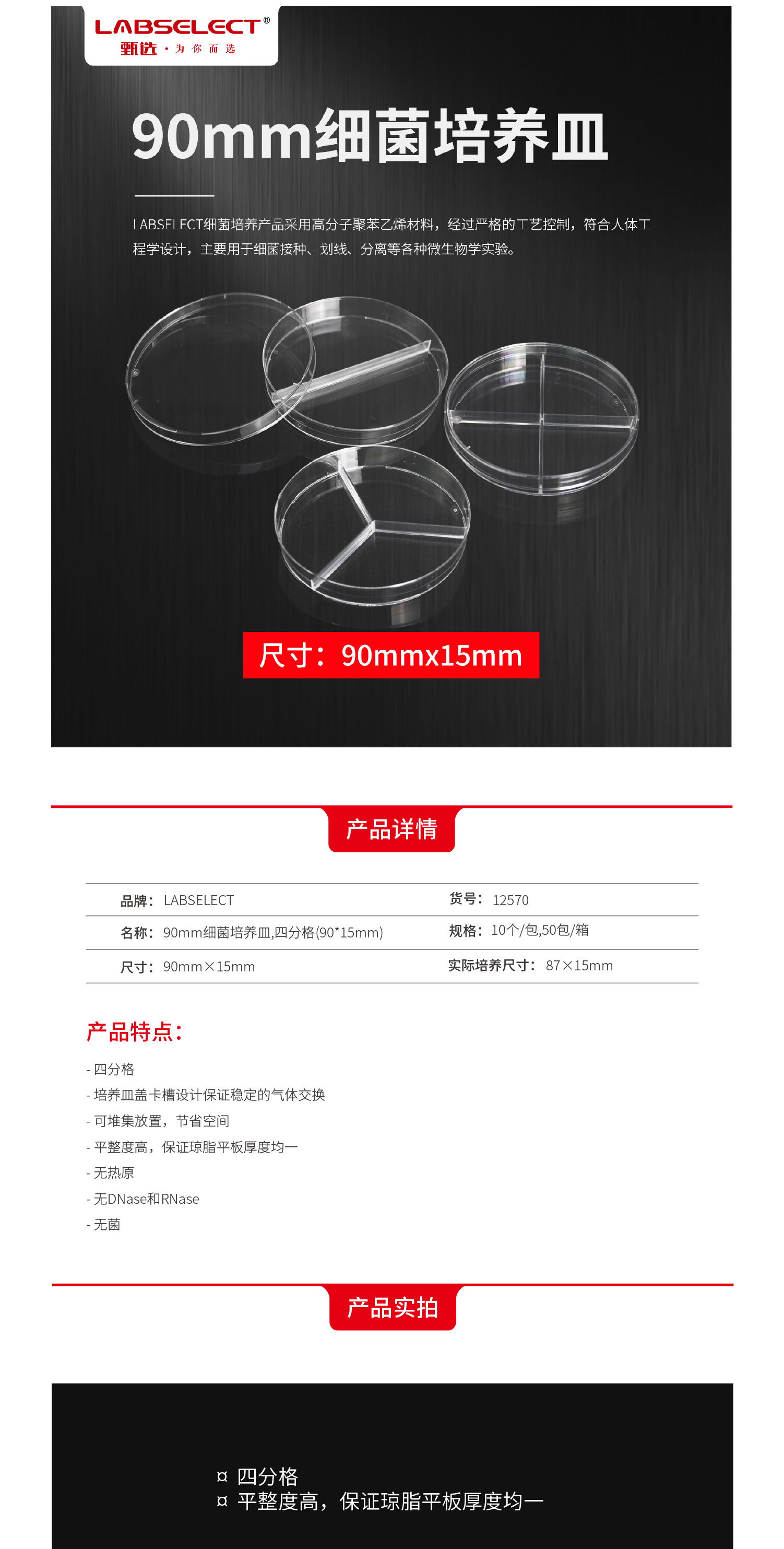 12570 90mm细菌培养皿,四分格(90*15mm)
