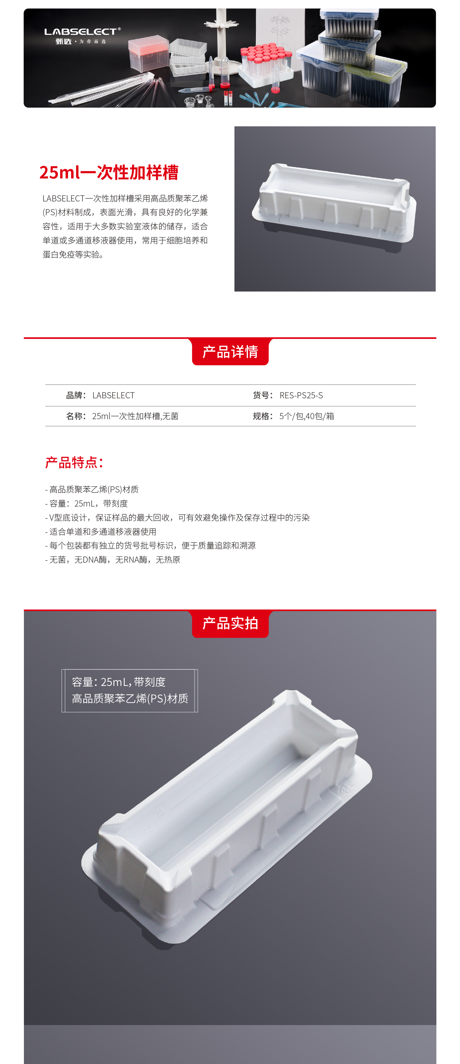 RES-PS25-S 25mL一次性加样槽,无菌