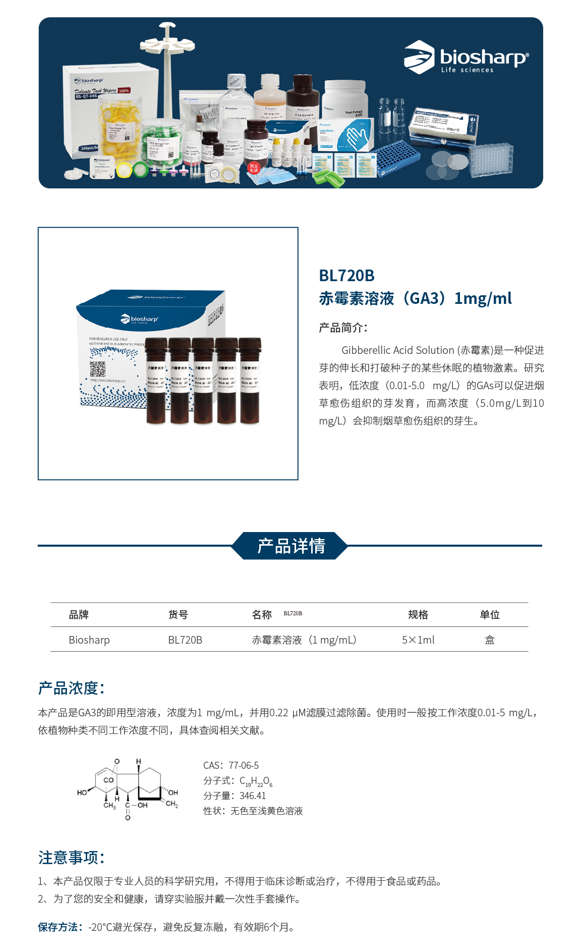 BL720B 赤霉素溶液(GA3)1mg/ml
