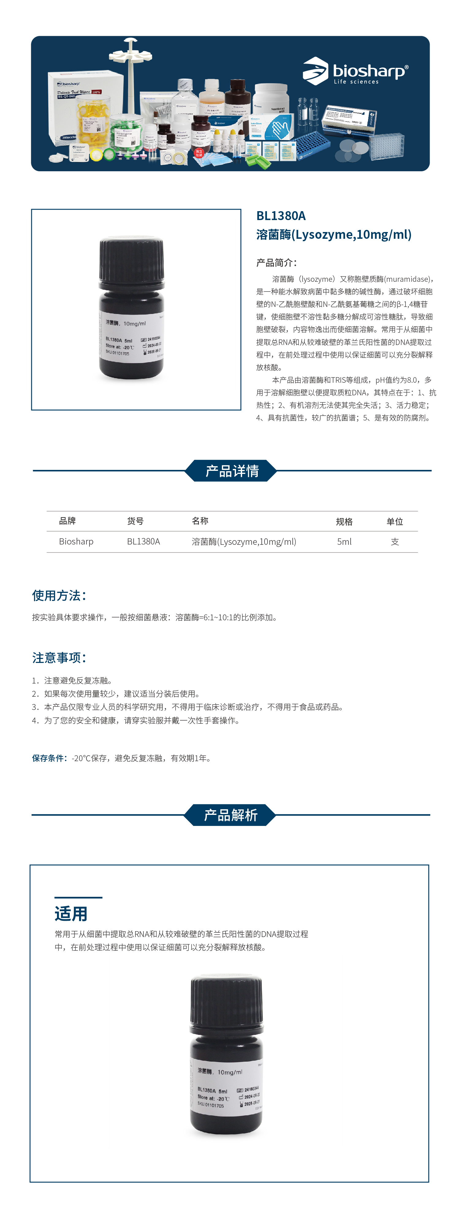 BL1380A 溶菌酶(Lysozyme,10mg/ml)