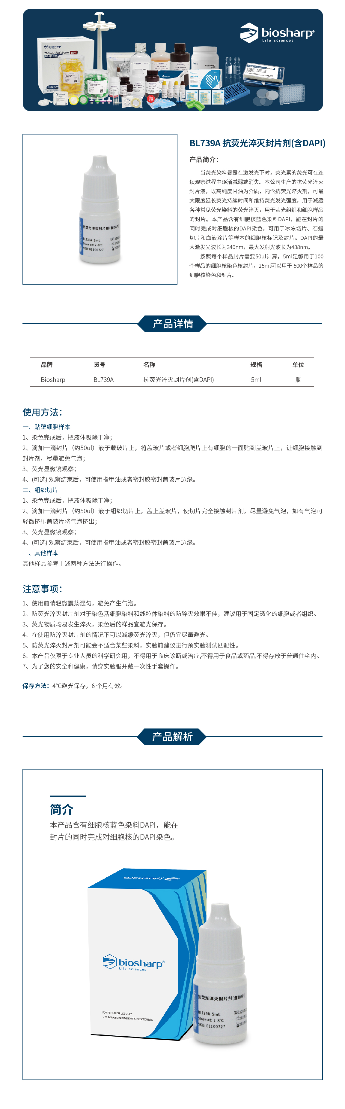 BL739A 抗荧光淬灭封片剂(含DAPI)