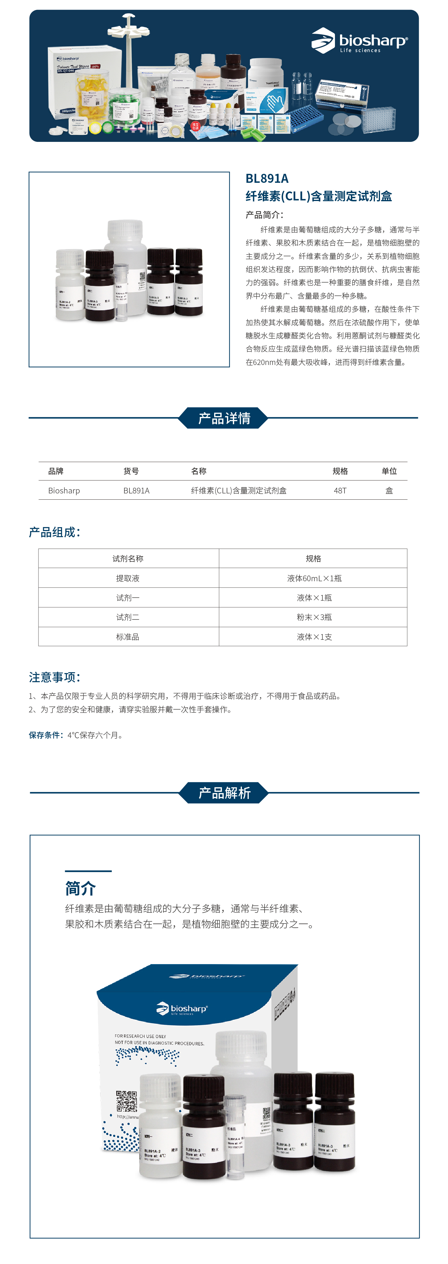 BL891A 纤维素(CLL)含量测定试剂盒 分光法