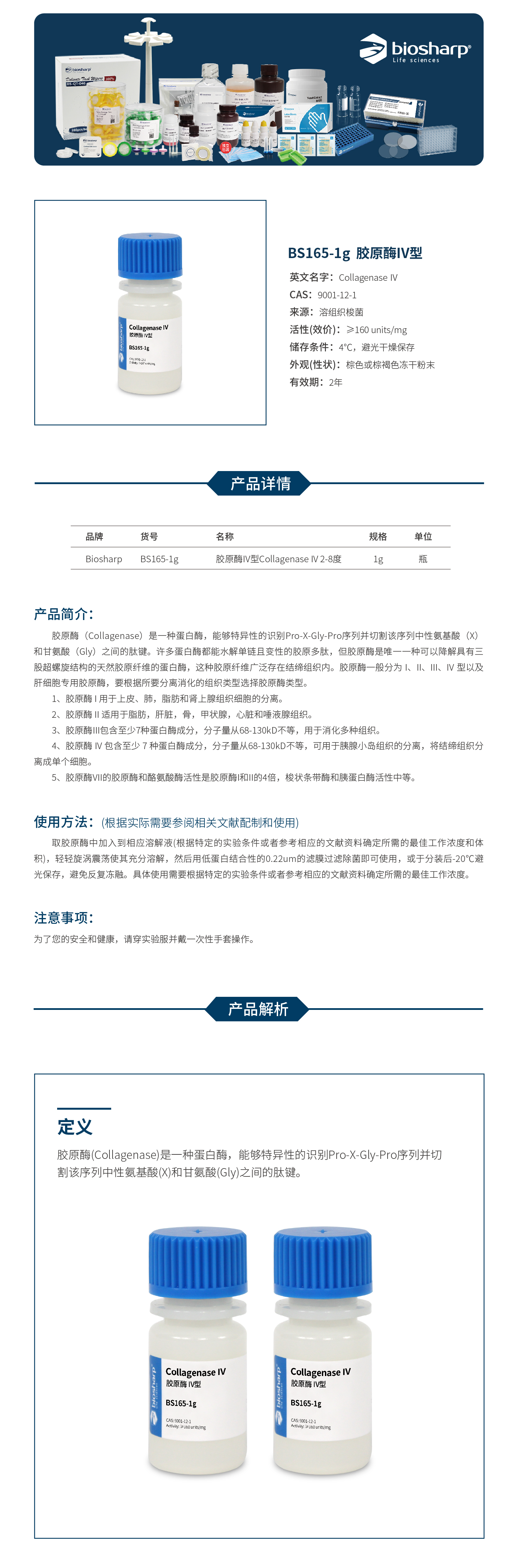 BS165-1g 胶原酶IV型Collagenase IV 2-8度