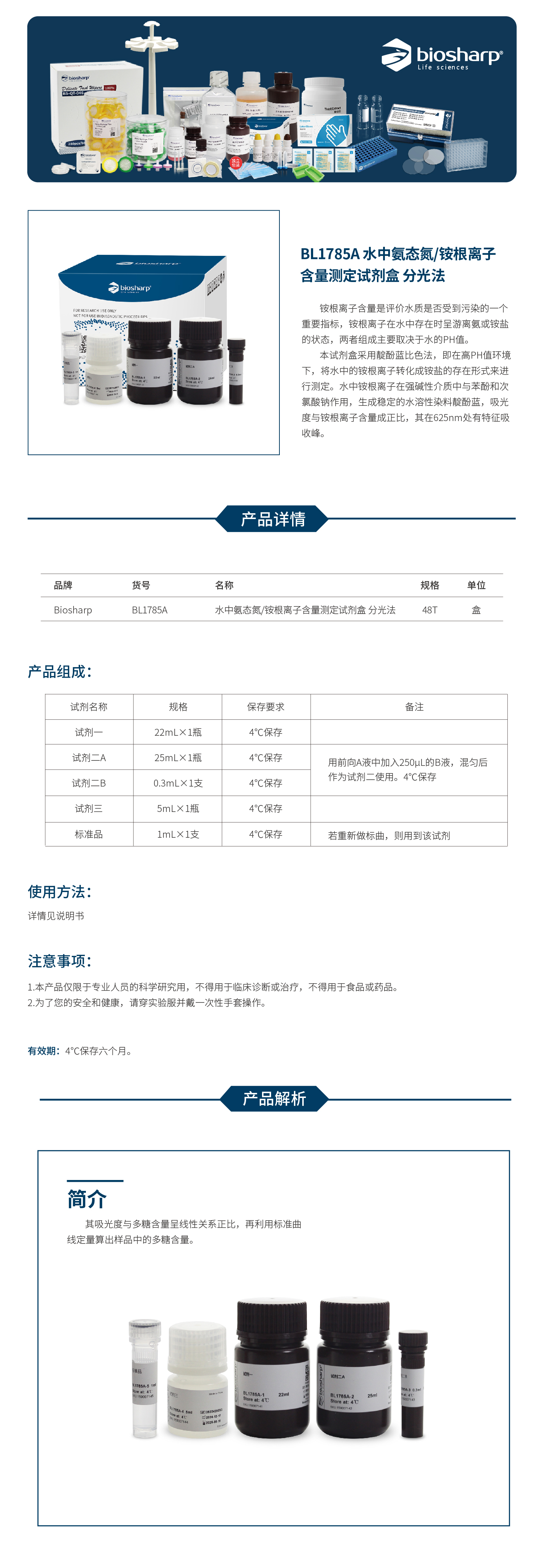BL1785A 水中氨态氮/铵根离子含量测定试剂盒 分光法