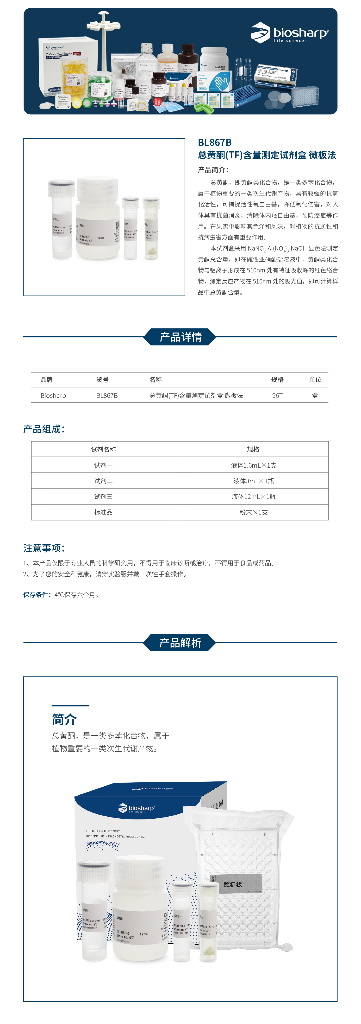 BL867B 总黄酮(TF)含量测定试剂盒 微板法