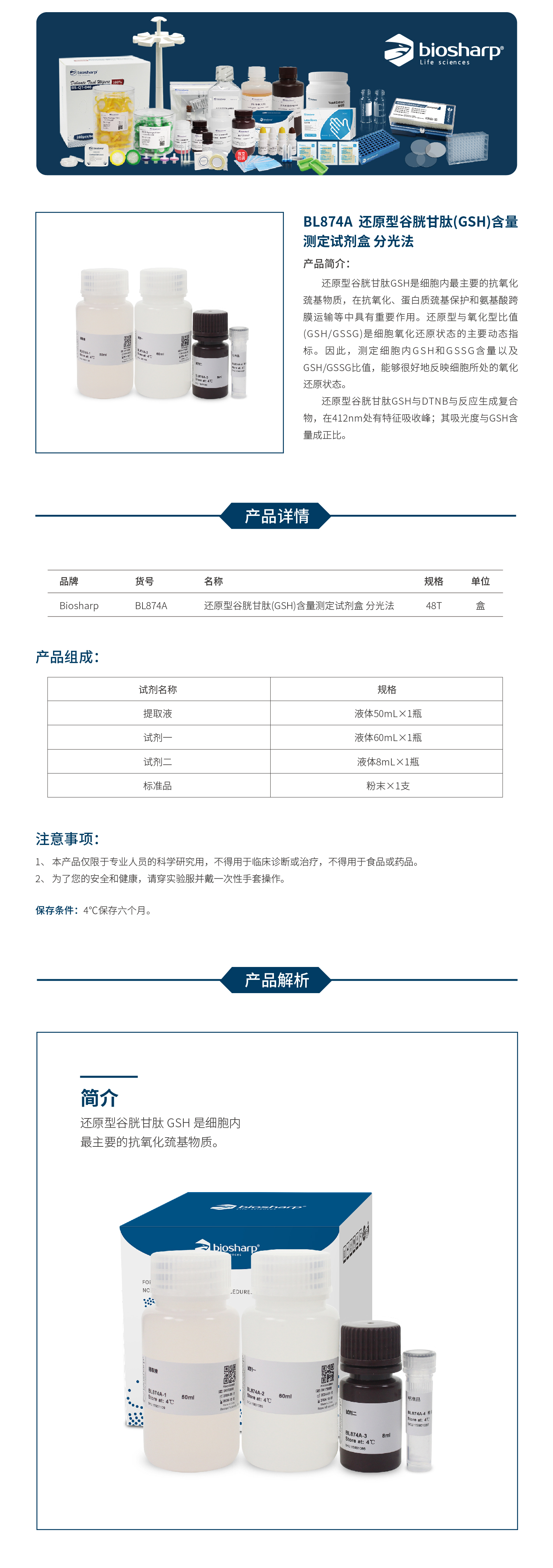 BL874A 还原型谷胱甘肽(GSH)含量测定试剂盒 分光法