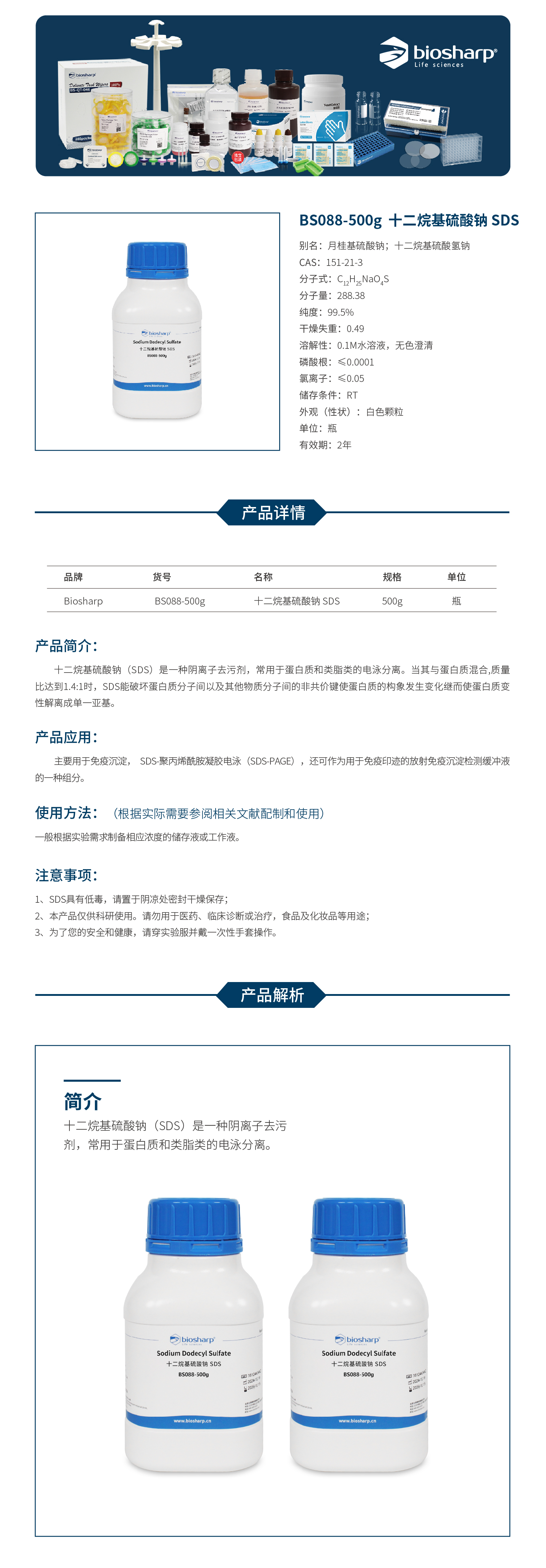 BS088-500g 十二烷基硫酸钠 SDS