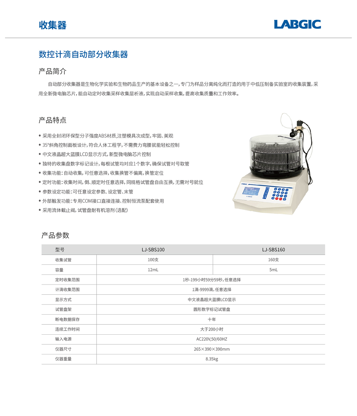 - 定时功能:收集时间,倒、顺定时任意选择,同规格试管盘自由互换,无需对号就位