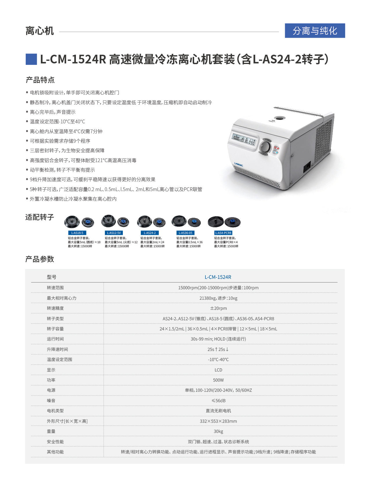 L-CM-1524R 高速微量冷冻离心机套装(含L-AS24-2转子) |
