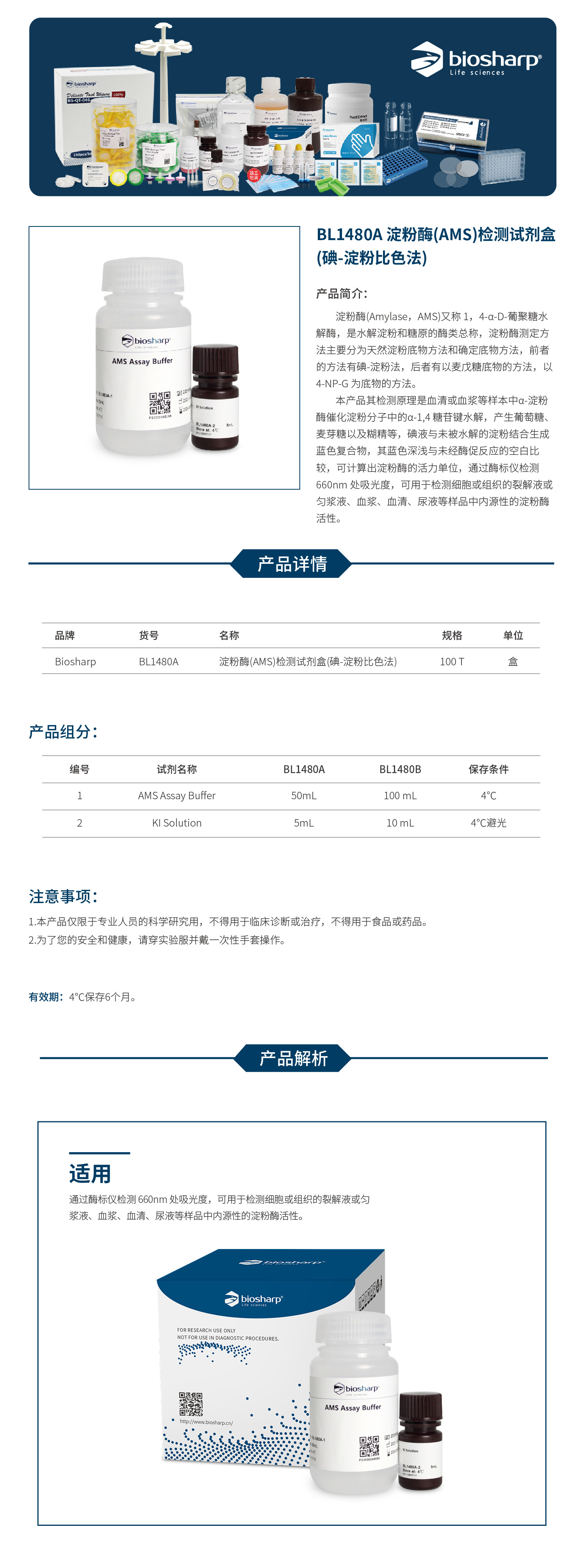 BL1480A 淀粉酶(AMS)检测试剂盒(碘-淀粉比色法)