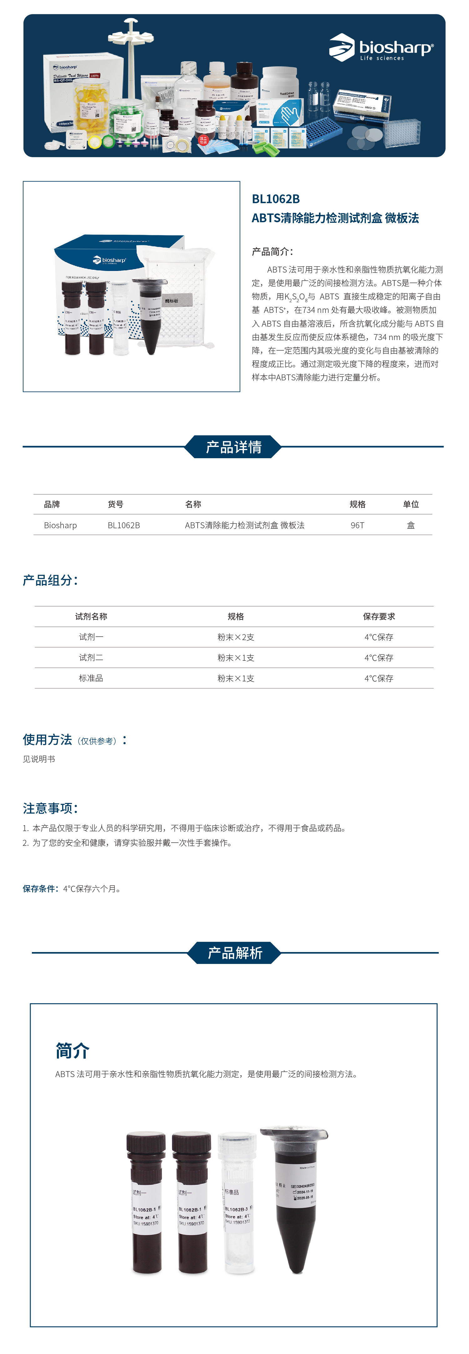 BL1062B ABTS清除能力检测试剂盒 微板法