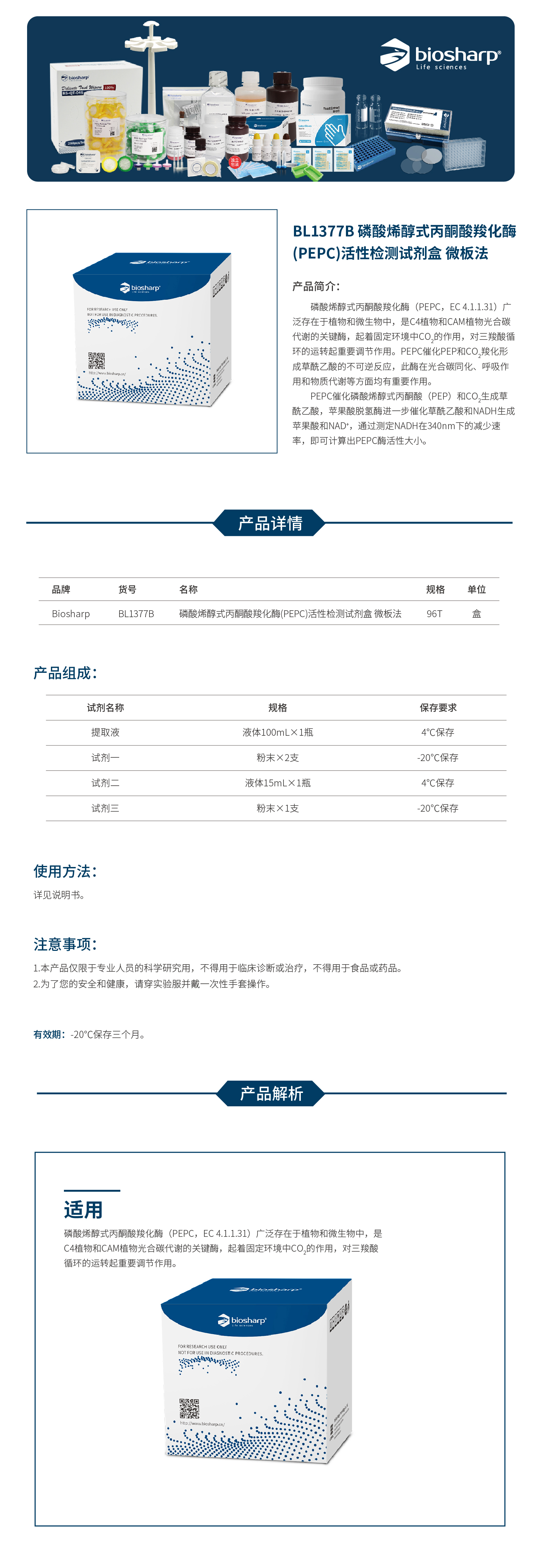 BL1377B 磷酸烯醇式丙酮酸羧化酶(PEPC)活性检测试剂盒 微板法
