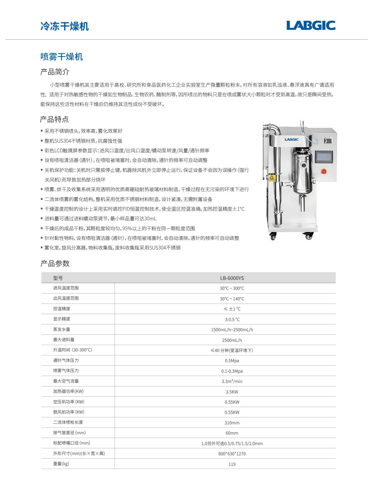 - 喷雾、烘干及收集系统采用透明的优质高硼硅耐热玻璃材料制造,干燥过程在无污染的环境下进行