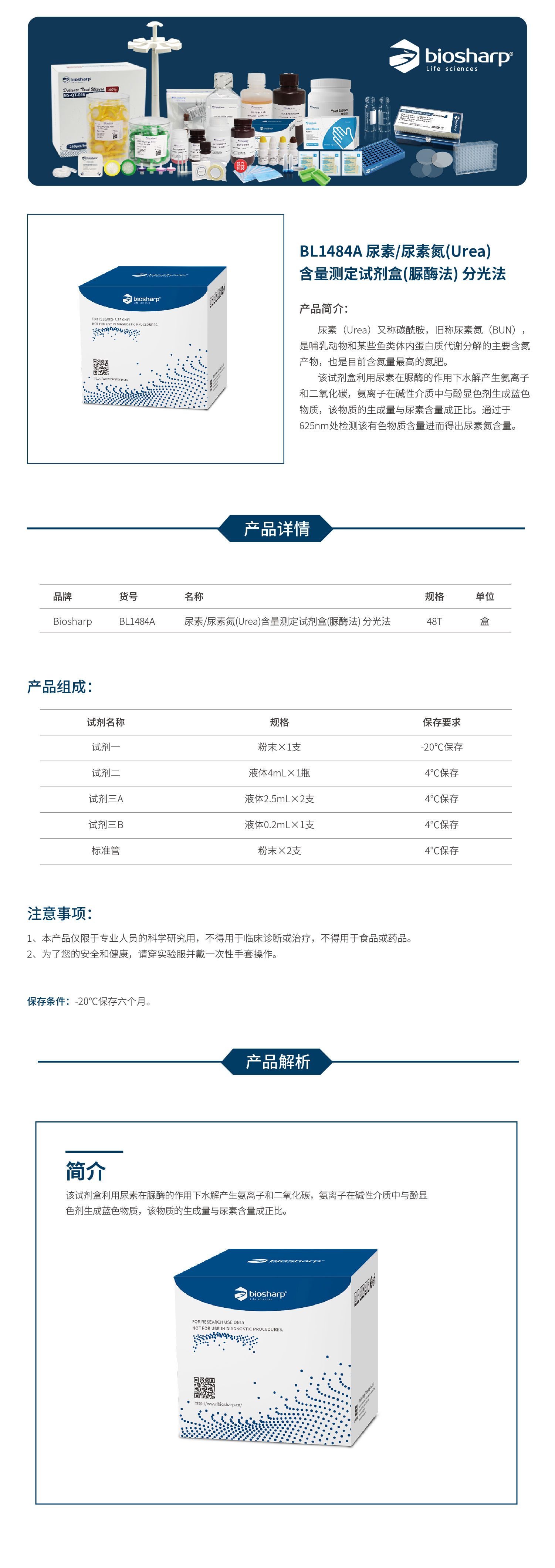 BL1484A 尿素/尿素氮(Urea)含量测定试剂盒(脲酶法) 分光法