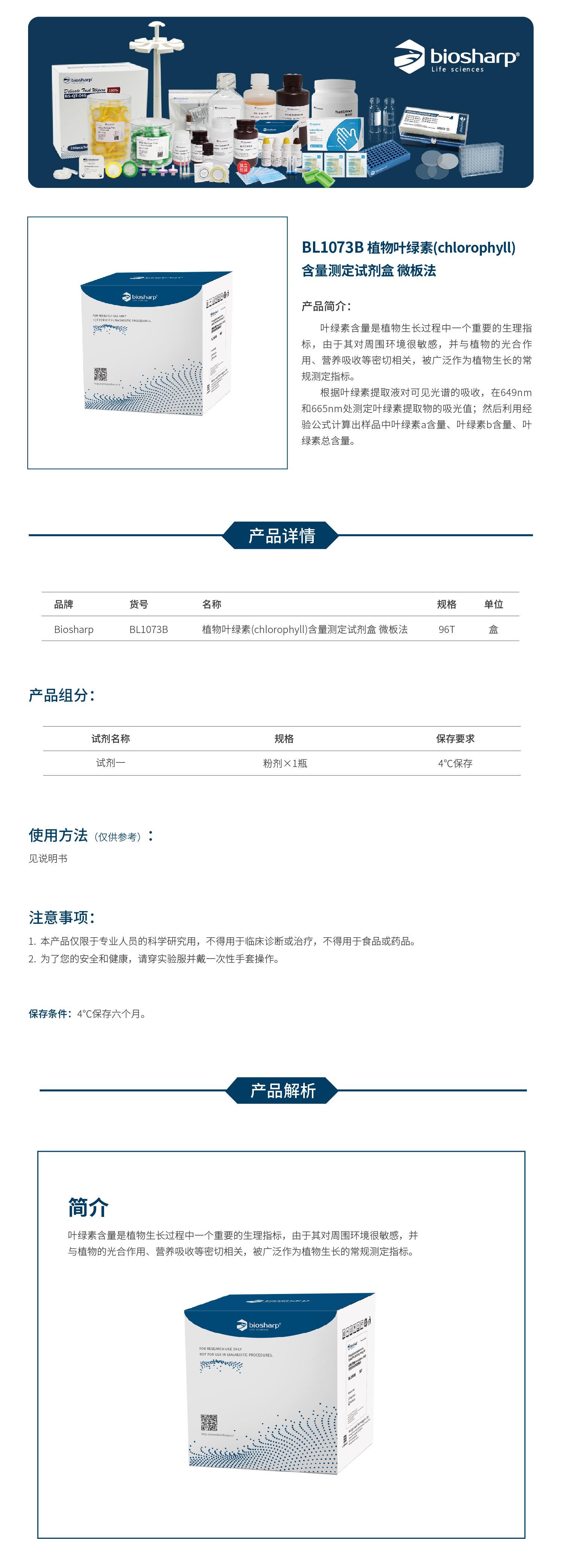 BL1073B 植物叶绿素(chlorophyll)含量测定试剂盒 微板法
