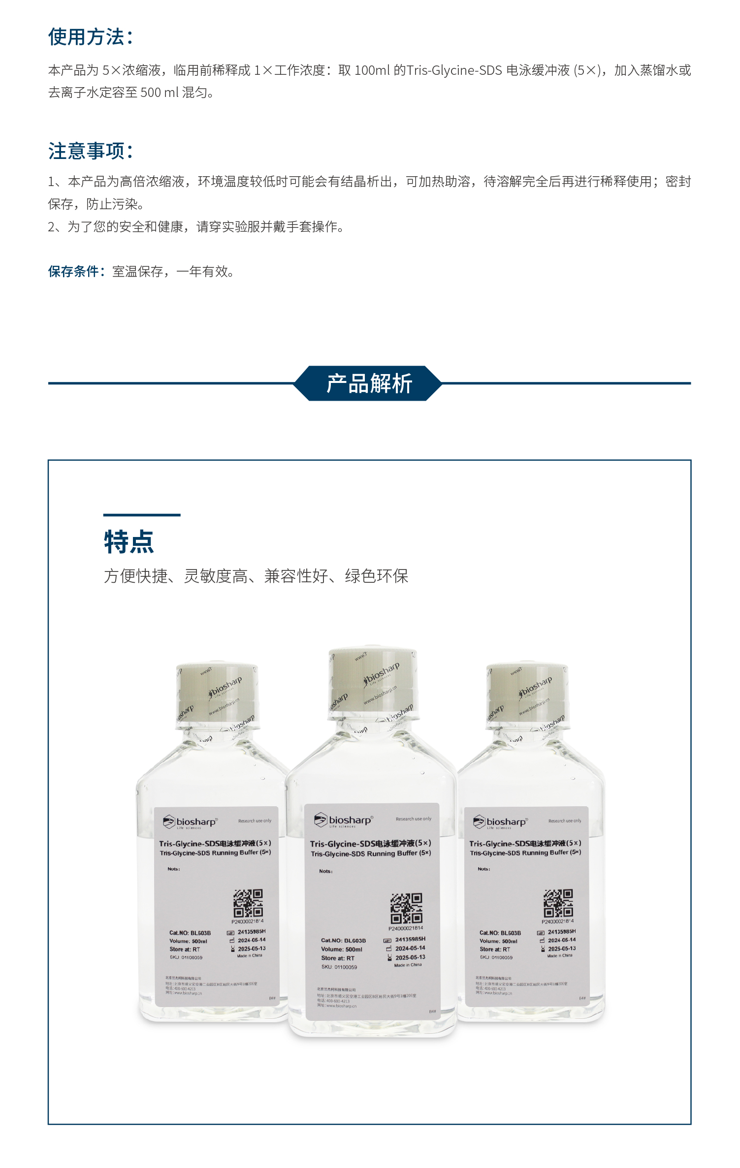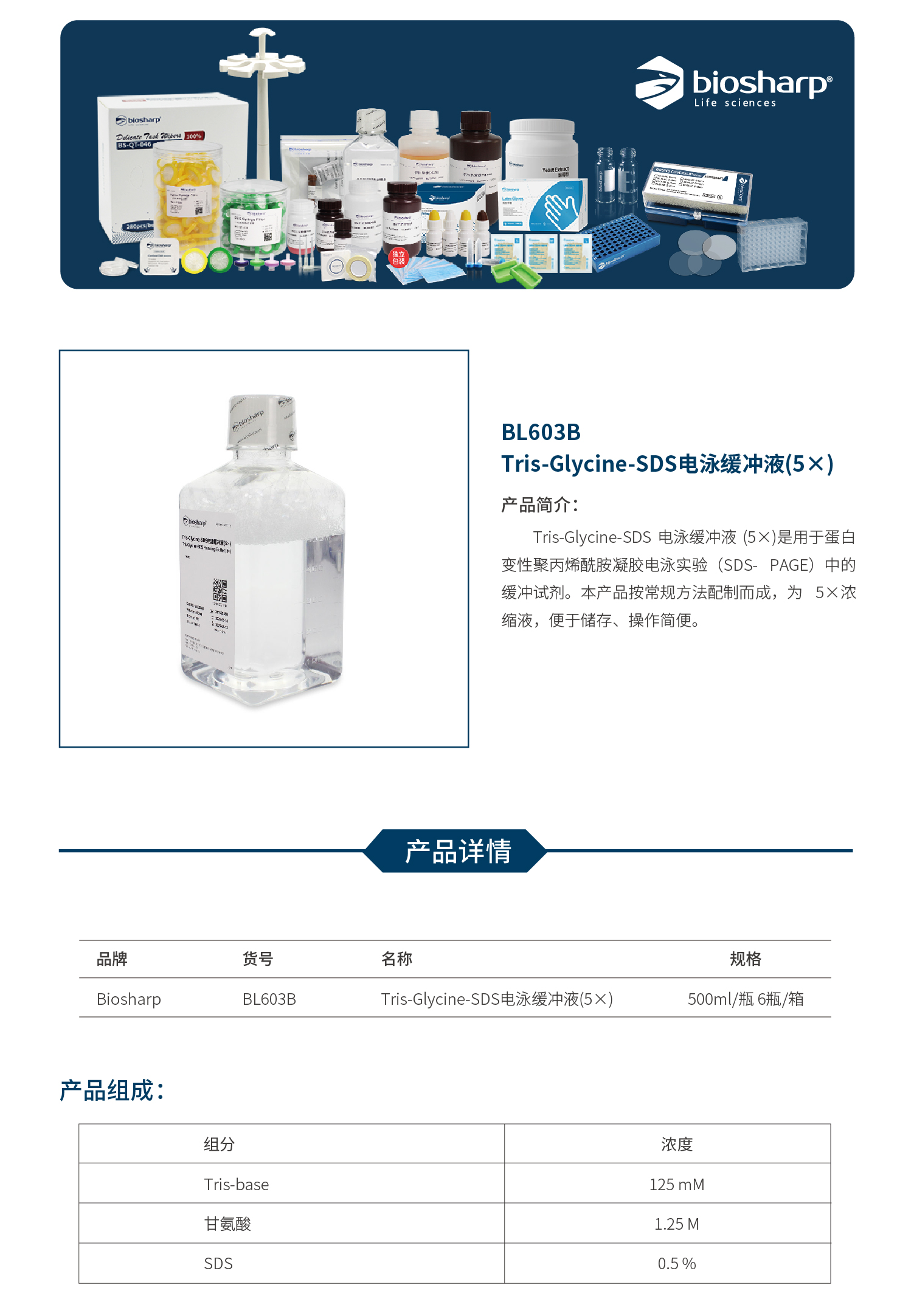 BL603B Tris-Glycine-SDS电泳缓冲液(5×)
