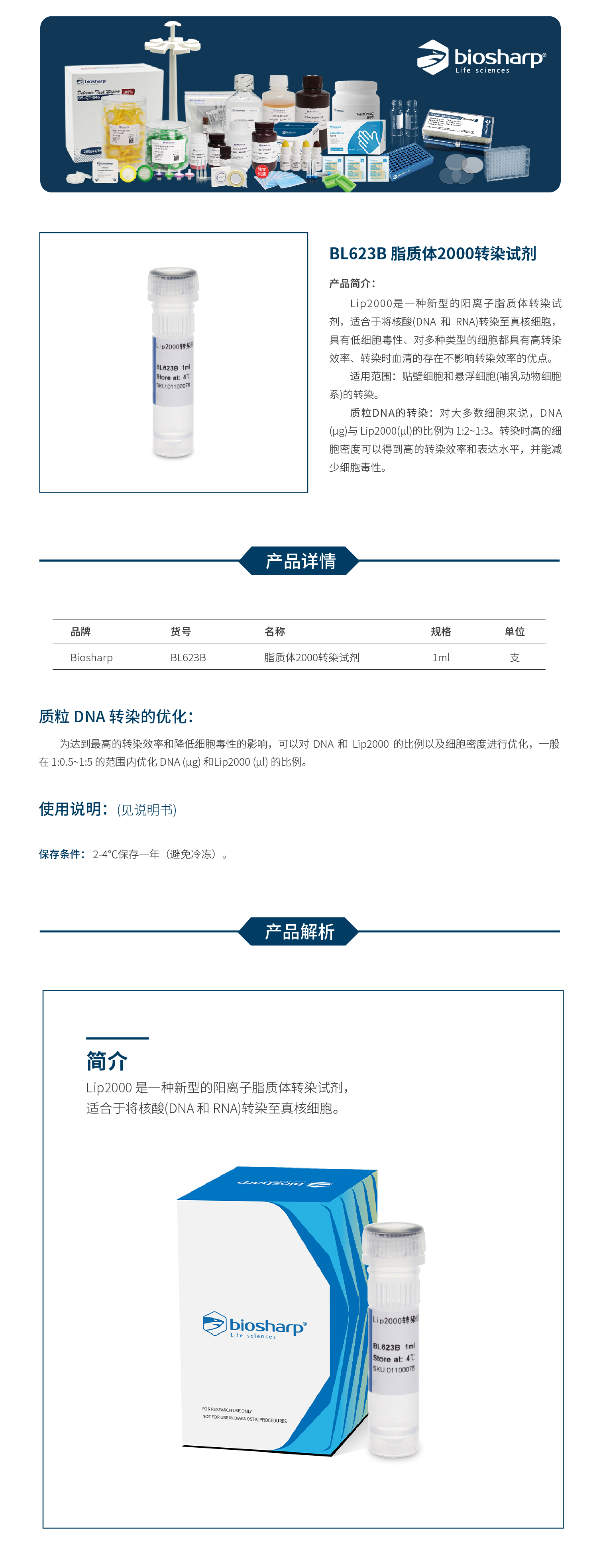 BL623B 脂质体2000转染试剂