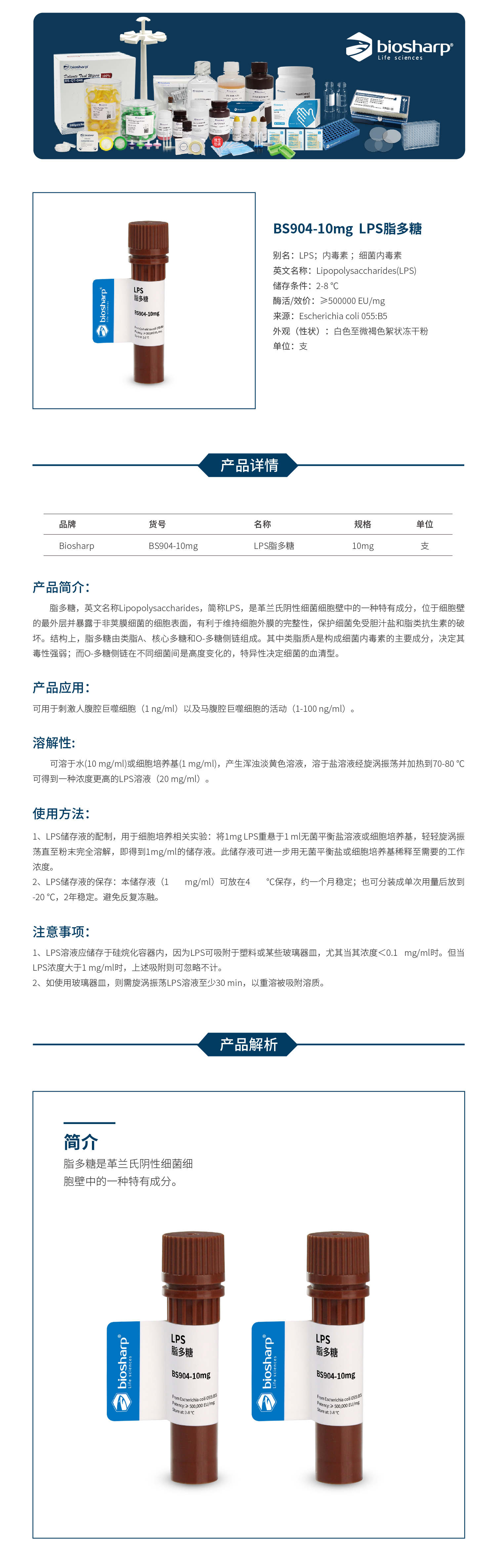 BS904-10mg 脂多糖LPS(进口分装) 2-8度