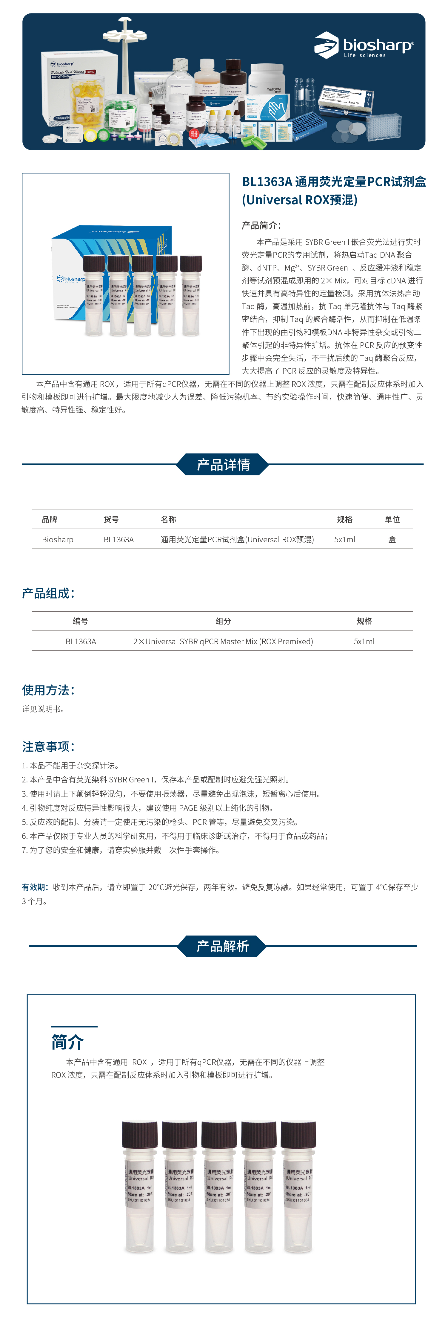 BL1363A 通用荧光定量PCR试剂盒(Universal ROX预混)
