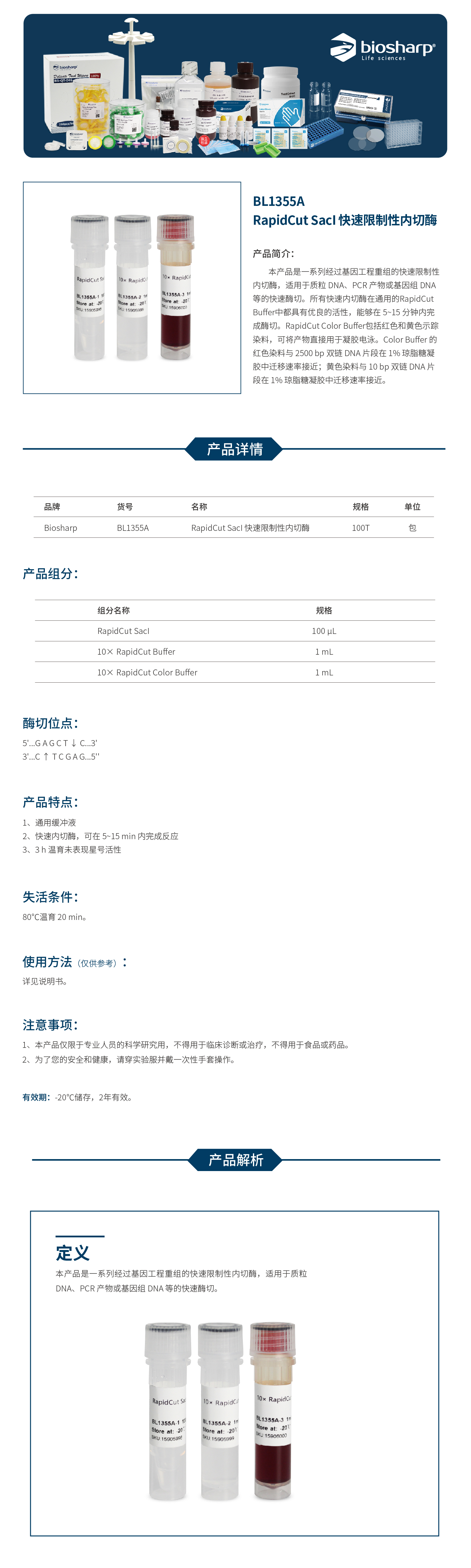 BL1355A RapidCut SacI 快速限制性内切酶