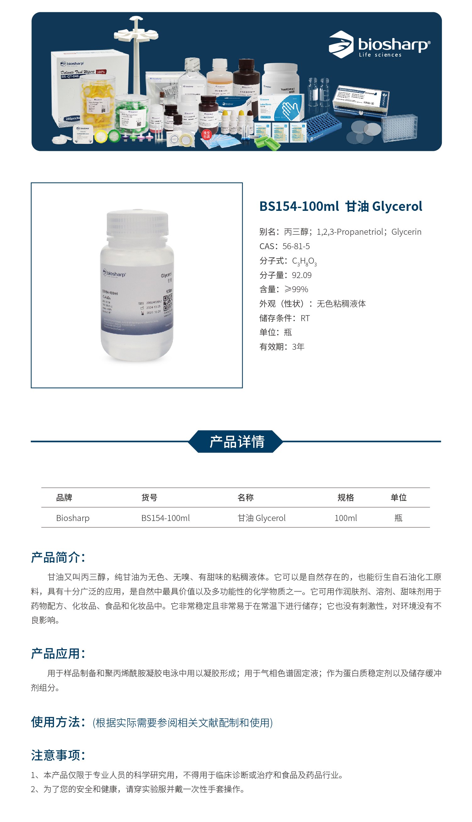 BS154-100ml 甘油Glycerol