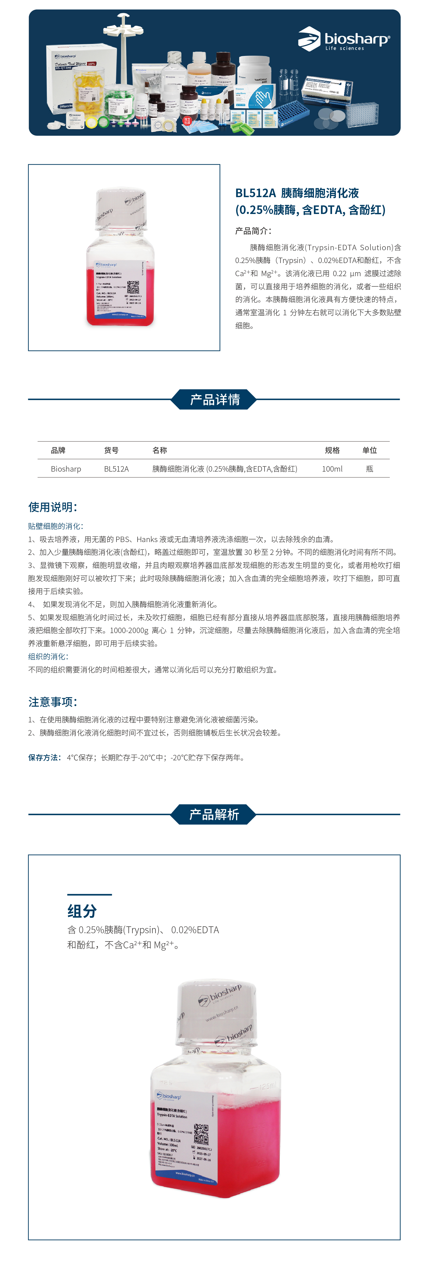 BL512A 胰酶细胞消化液(0.25%胰酶,含EDTA,含酚红)