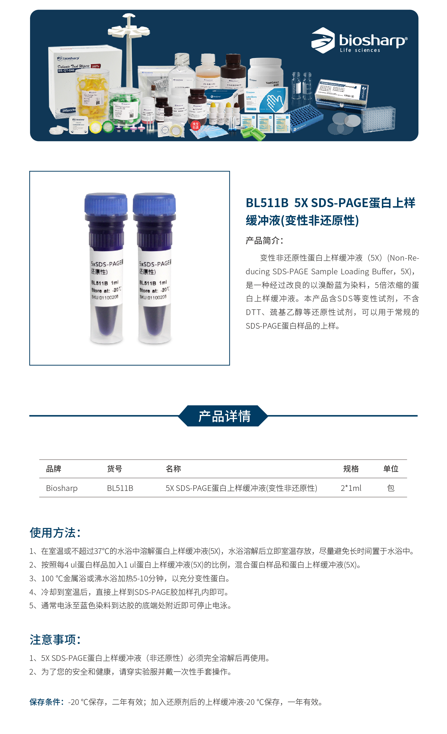 BL511B 5x SDS-PAGE蛋白上样缓冲液(变性非还原性)