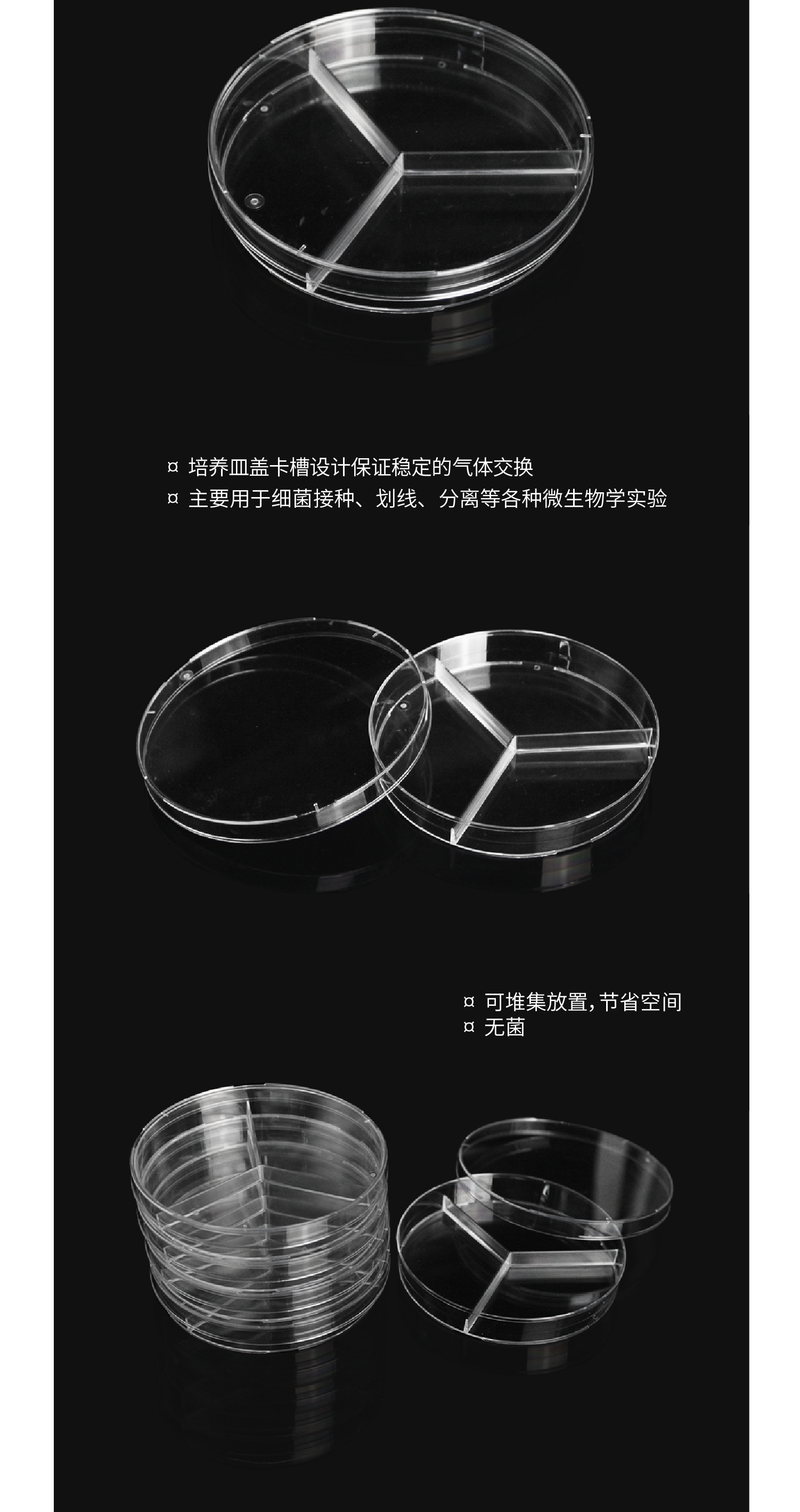 12560 90mm细菌培养皿,三分格(90*15mm)
