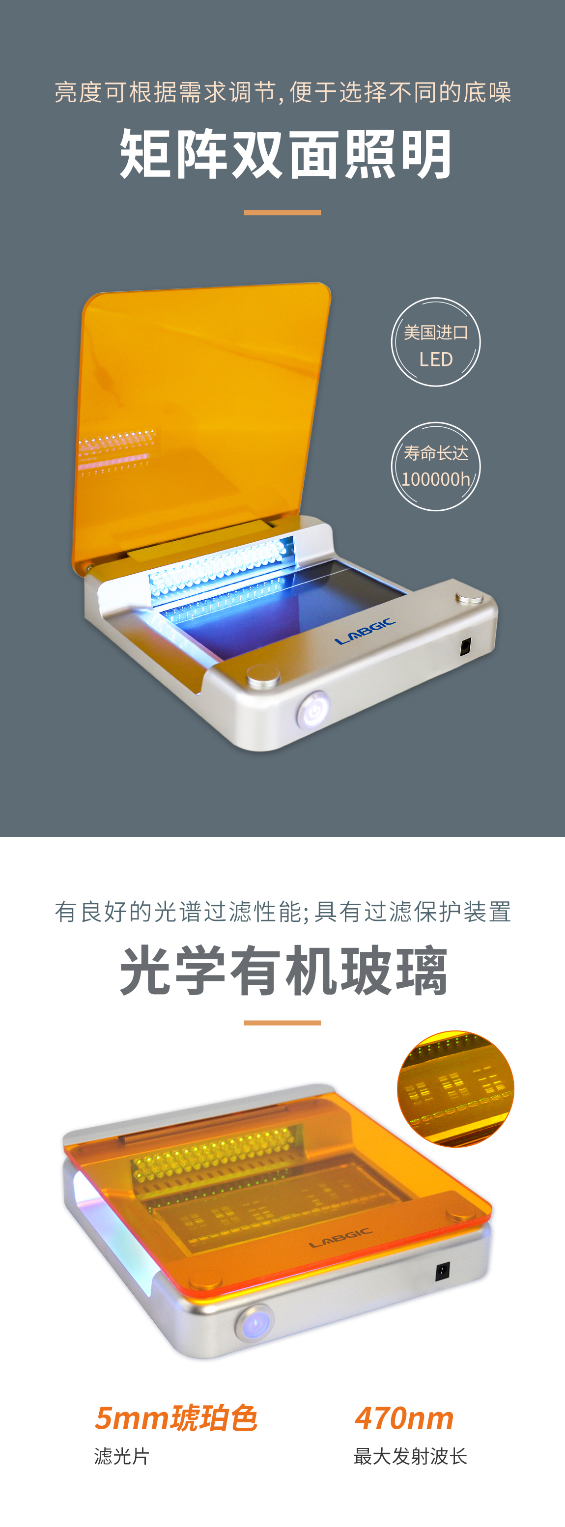 - 使用矩阵双面照明,亮度可根据用户需求调节。便于用户选择不同的底噪。