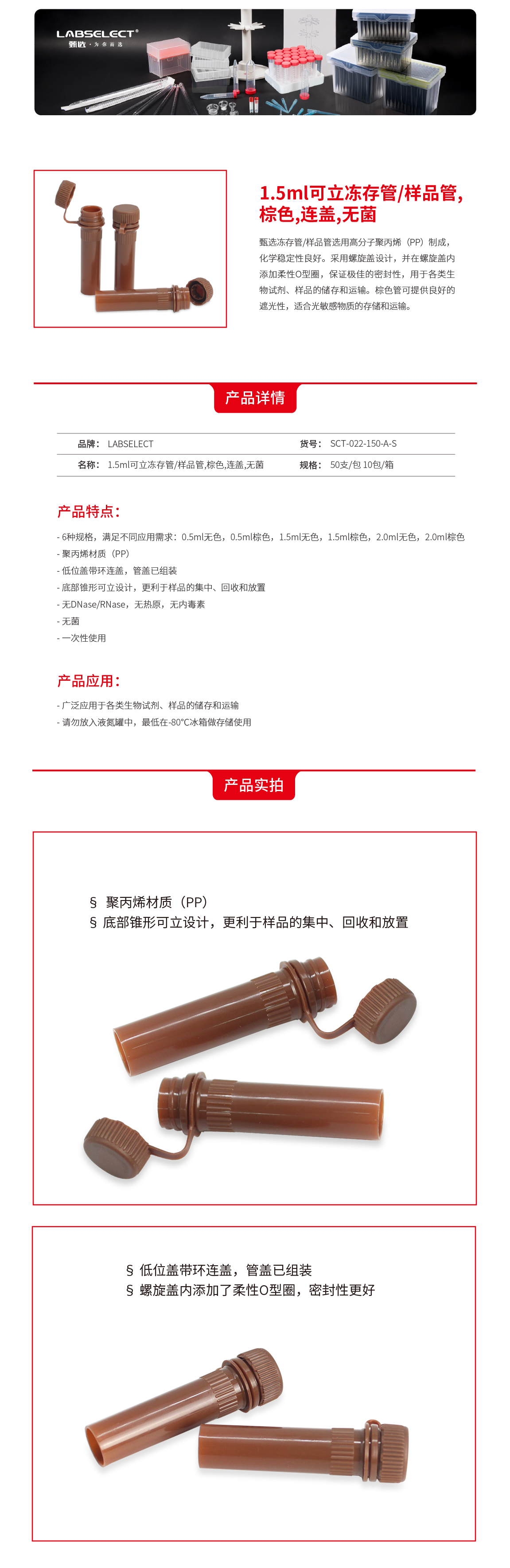 SCT-022-150-A-S 1.5mL可立冻存管/样品管,棕色,连盖,无菌
