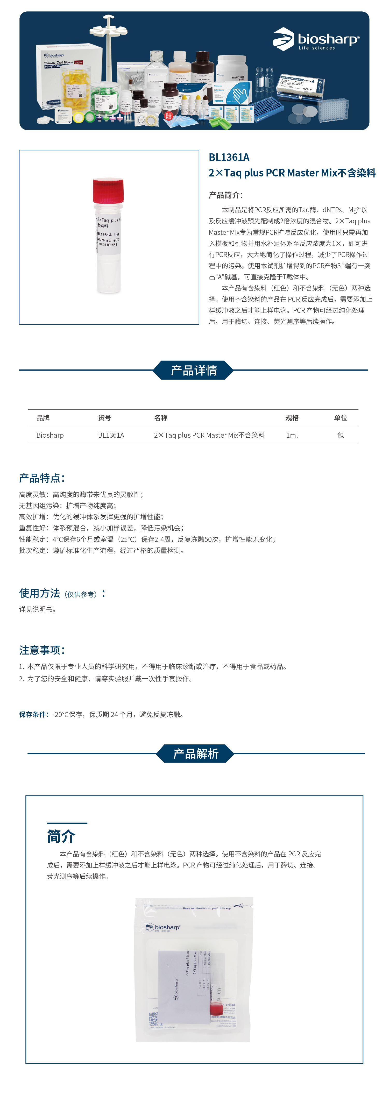 BL1361A 2×Taq plus PCR Master Mix不含染料