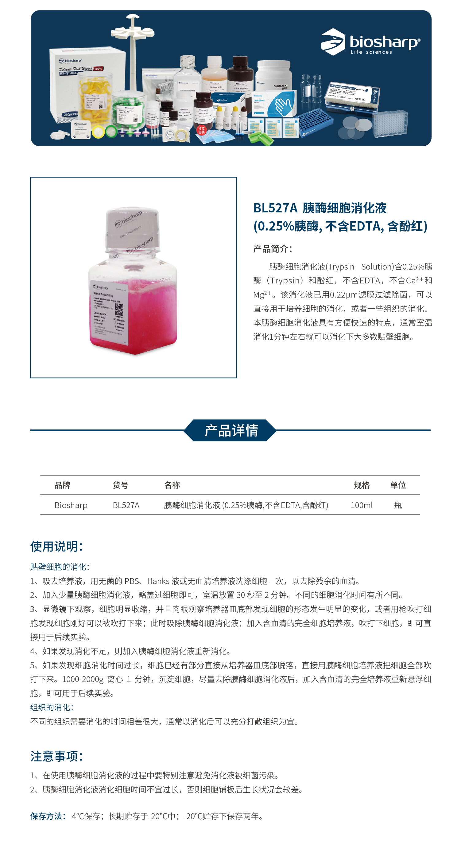BL527A 胰酶细胞消化液(0.25%胰酶,不含EDTA,含酚红)