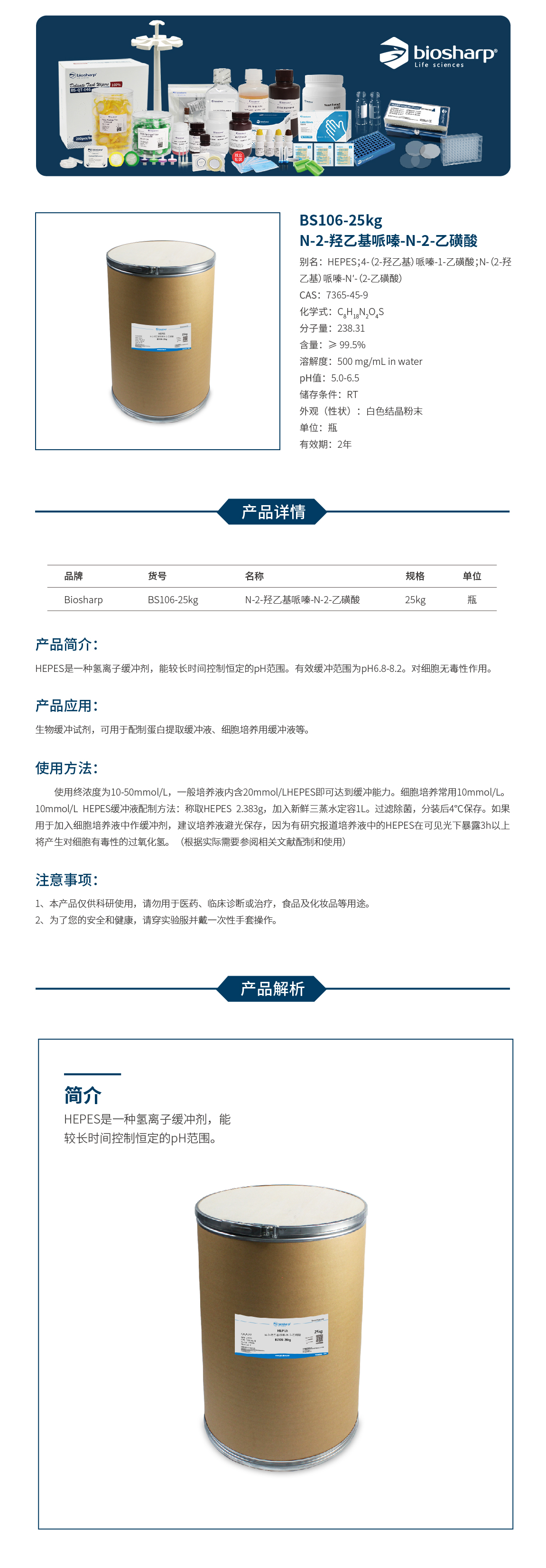 BS106-25kg N-2-羟乙基哌嗪-N-2-乙磺酸 HEPES