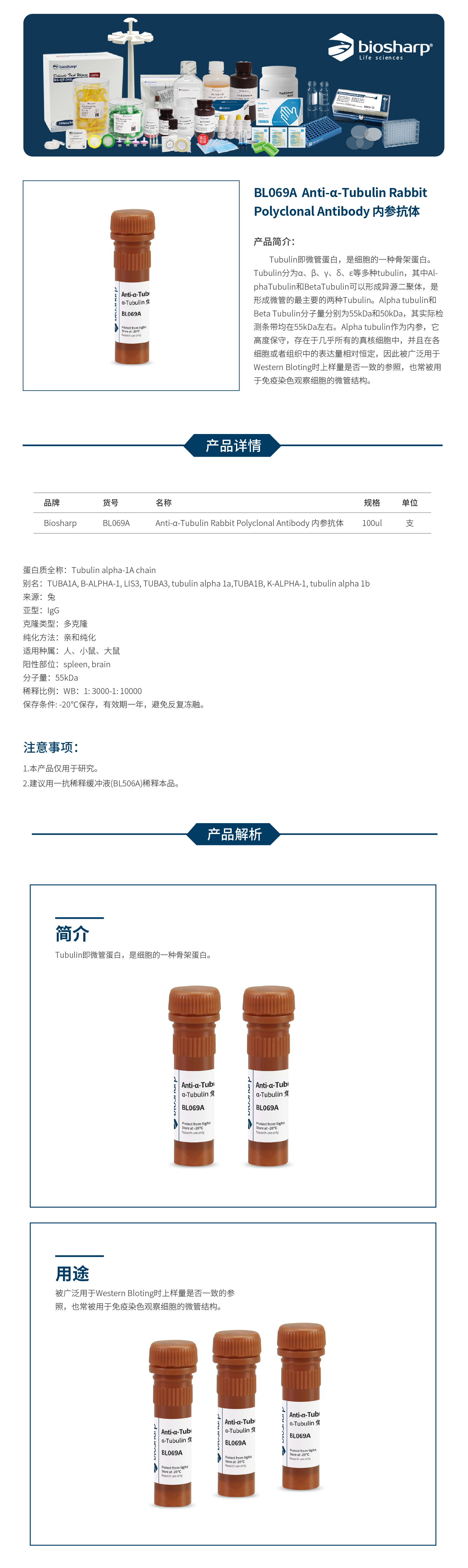 BL069A Anti-α-Tubulin Rabbit Polyclonal Antibody 内参抗体