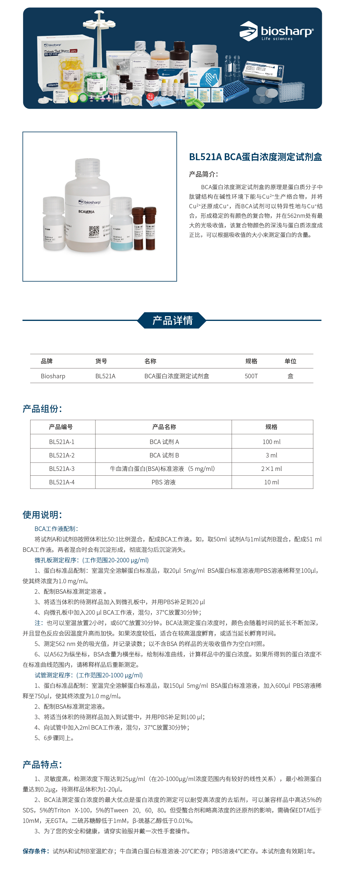 BL521A BCA蛋白浓度测定试剂盒