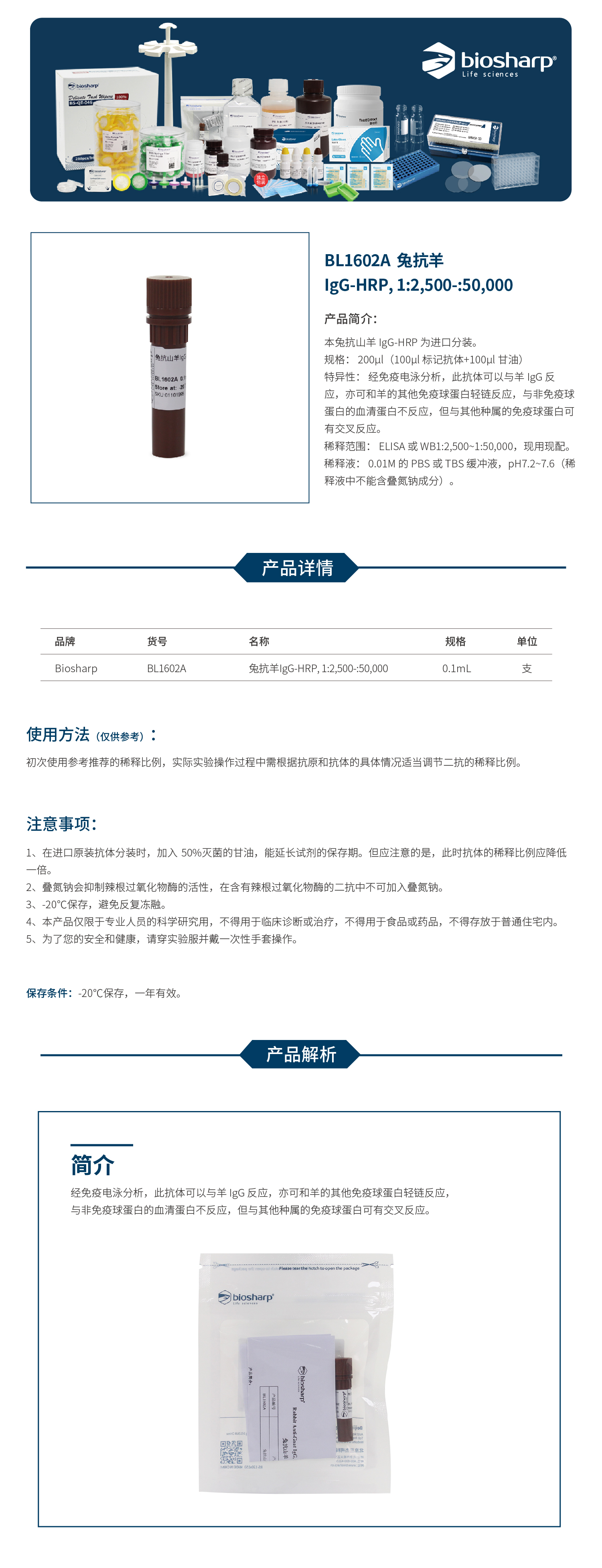BL1602A 兔抗羊IgG-HRP, 1:2,500-:50,000