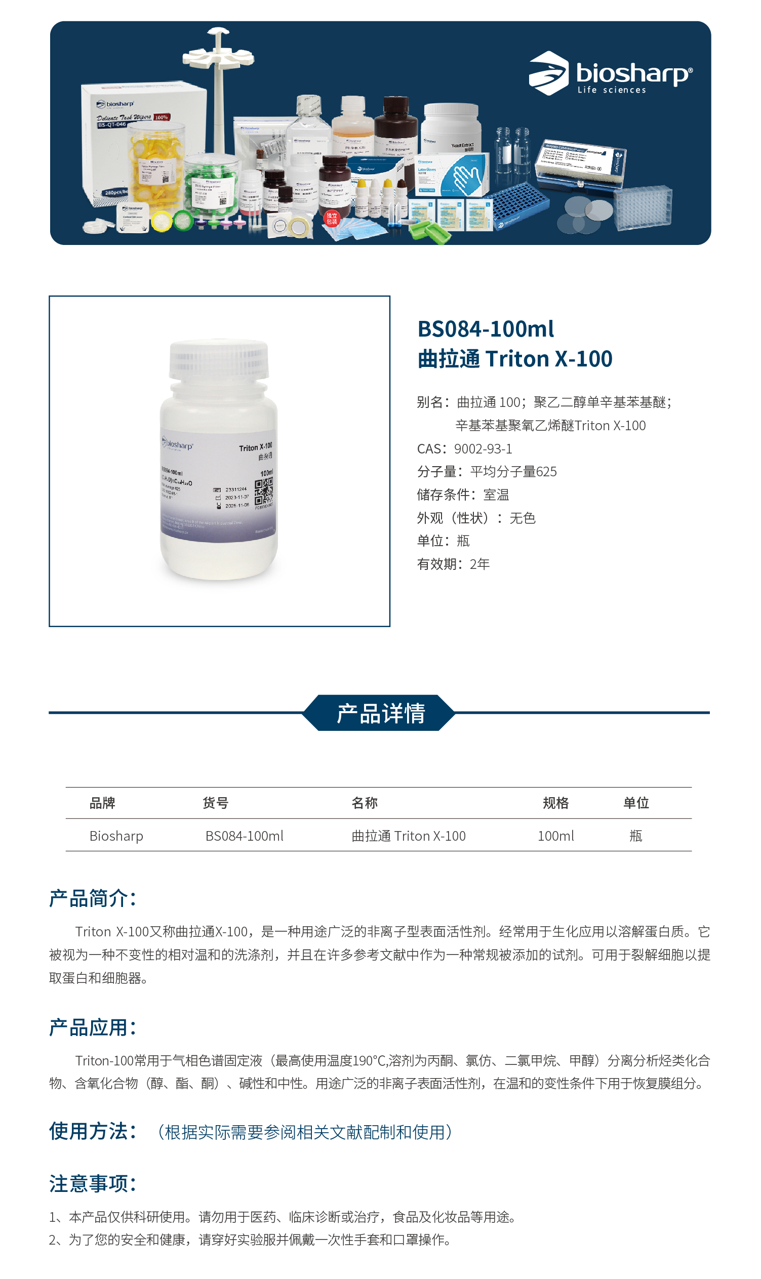 BS084-100ml 曲拉通 Triton X-100