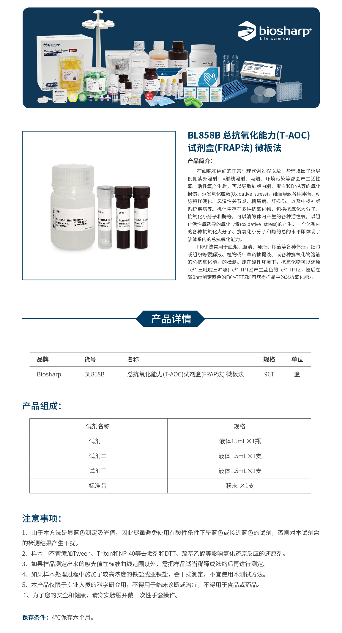 BL858B 总抗氧化能力(T-AOC)试剂盒(FRAP法) 微板法