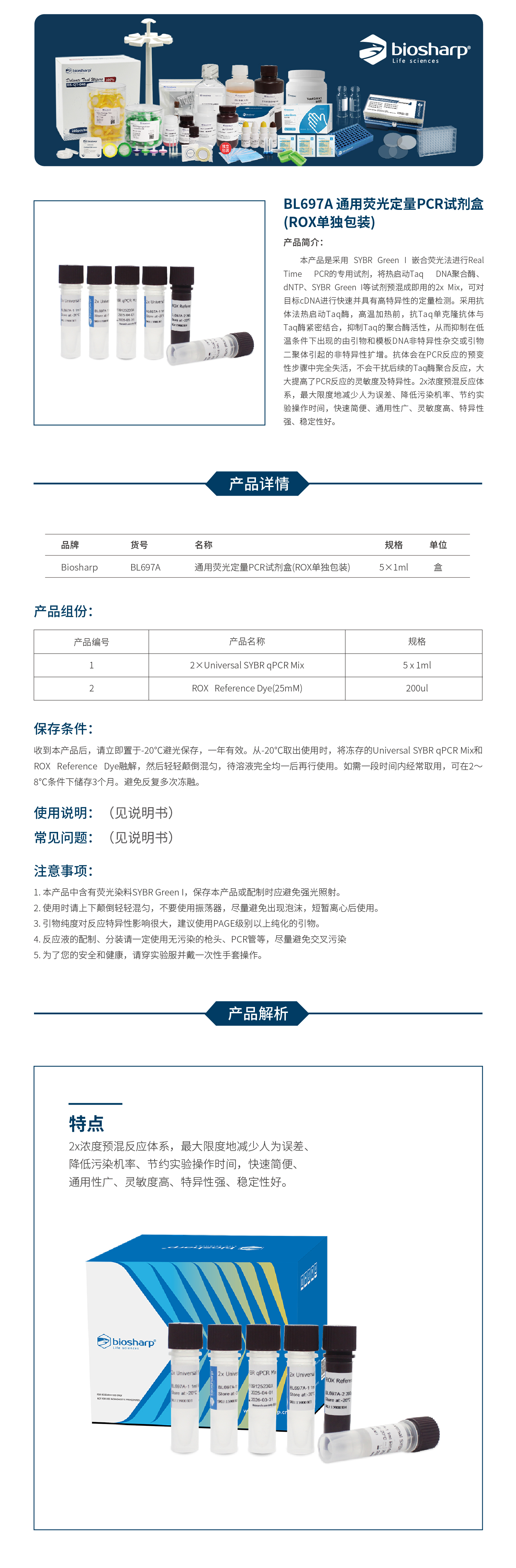 BL697A 通用荧光定量PCR试剂盒(ROX单独包装)