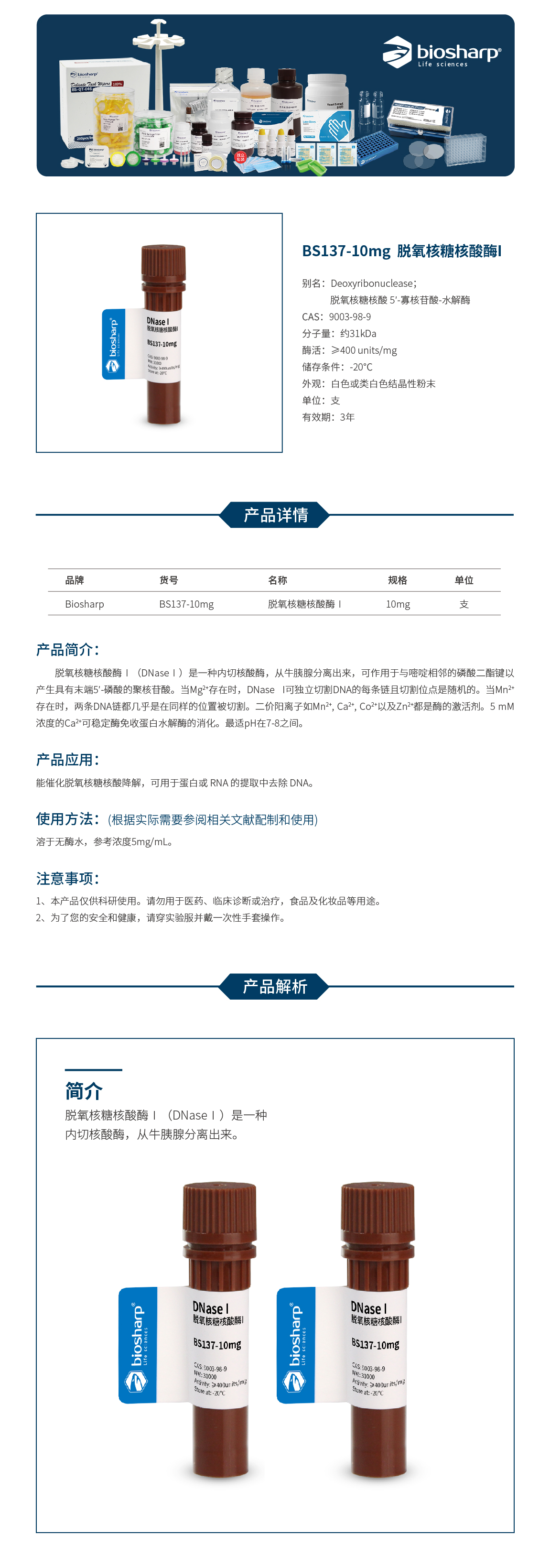 BS137-10mg 脱氧核糖核酸酶I DNaseI